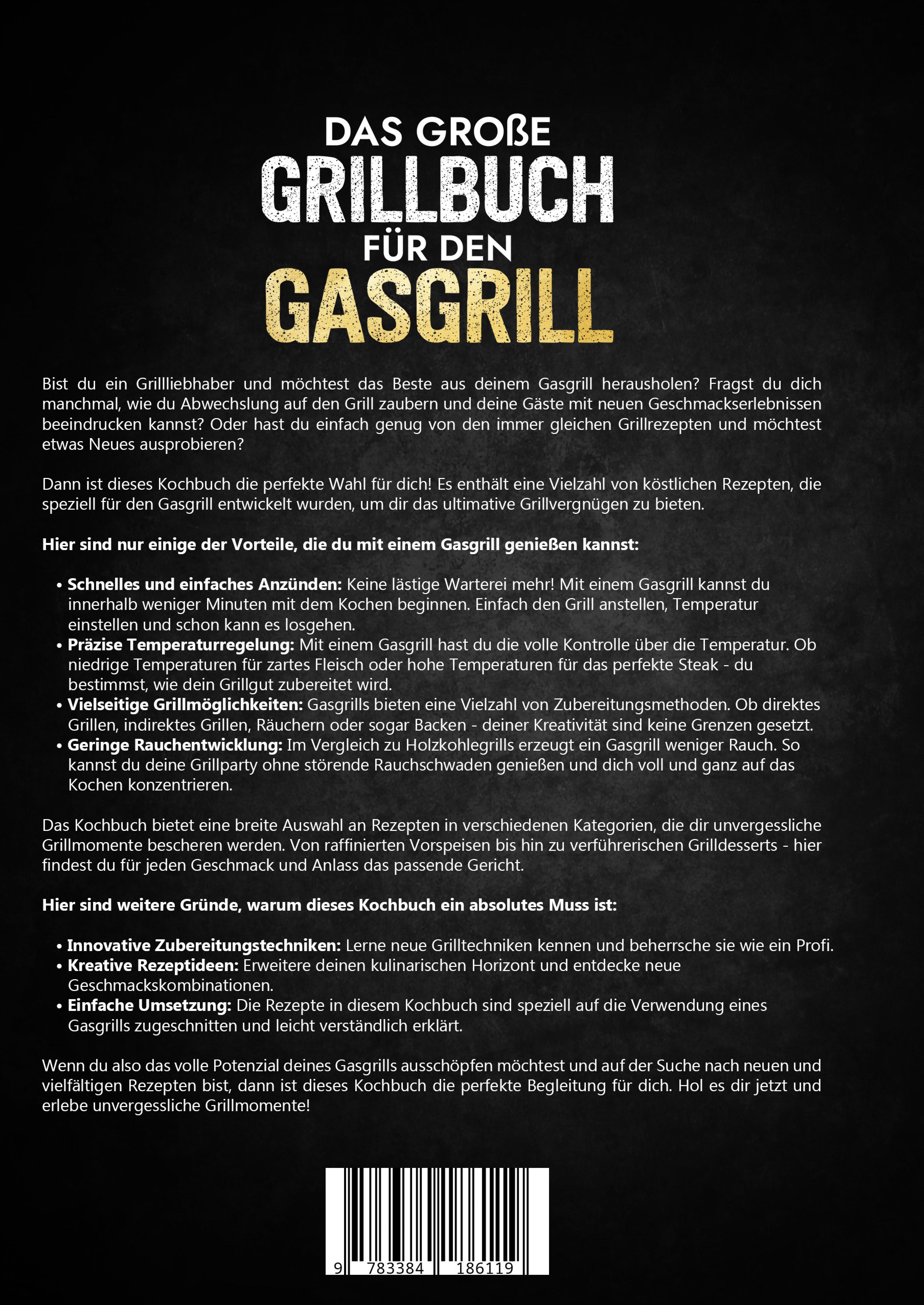 Bist du ein Grillliebhaber und möchtest das Beste aus deinem Gasgrill herausholen? Fragst du dich manchmal, wie du Abwechslung auf den Grill zaubern und deine Gäste mit neuen Geschmackserlebnissen beeindrucken kannst? Oder hast du einfach genug von den immer gleichen Grillrezepten und möchtest etwas Neues ausprobieren?Dann ist dieses Kochbuch die perfekte Wahl für dich! Es enthält eine Vielzahl von köstlichen Rezepten, die speziell für den Gasgrill entwickelt wurden, um dir das ultimative Grillvergnügen zu bieten.Hier sind nur einige der Vorteile, die du mit einem Gasgrill genießen kannst:- Schnelles und einfaches Anzünden: Keine lästige Warterei mehr! Mit einem Gasgrill kannst du innerhalb weniger Minuten mit dem Kochen beginnen. Einfach den Grill anstellen, Temperatur einstellen und schon kann es losgehen.- Präzise Temperaturregelung: Mit einem Gasgrill hast du die volle Kontrolle über die Temperatur. Ob niedrige Temperaturen für zartes Fleisch oder hohe Temperaturen für das perfekte Steak - du bestimmst, wie dein Grillgut zubereitet wird.- Vielseitige Grillmöglichkeiten: Gasgrills bieten eine Vielzahl von Zubereitungsmethoden. Ob direktes Grillen, indirektes Grillen, Räuchern oder sogar Backen - deiner Kreativität sind keine Grenzen gesetzt.- Geringe Rauchentwicklung: Im Vergleich zu Holzkohlegrills erzeugt ein Gasgrill weniger Rauch. So kannst du deine Grillparty ohne störende Rauchschwaden genießen und dich voll und ganz auf das Kochen konzentrieren.Das Kochbuch bietet eine breite Auswahl an Rezepten in verschiedenen Kategorien, die dir unvergessliche Grillmomente bescheren werden. Von raffinierten Vorspeisen bis hin zu verführerischen Grilldesserts - hier findest du für jeden Geschmack und Anlass das passende Gericht.Hier sind weitere Gründe, warum dieses Kochbuch ein absolutes Muss ist:- Innovative Zubereitungstechniken: Lerne neue Grilltechniken kennen und beherrsche sie wie ein Profi.- Kreative Rezeptideen: Erweitere deinen kulinarischen Horizont und entdecke neue Geschmackskombinationen.- Einfache Umsetzung: Die Rezepte in diesem Kochbuch sind speziell auf die Verwendung eines Gasgrills zugeschnitten und leicht verständlich erklärt.Wenn du also das volle Potenzial deines Gasgrills ausschöpfen möchtest und auf der Suche nach neuen und vielfältigen Rezepten bist, dann ist dieses Kochbuch die perfekte Begleitung für dich. Hol es dir jetzt und erlebe unvergessliche Grillmomente!