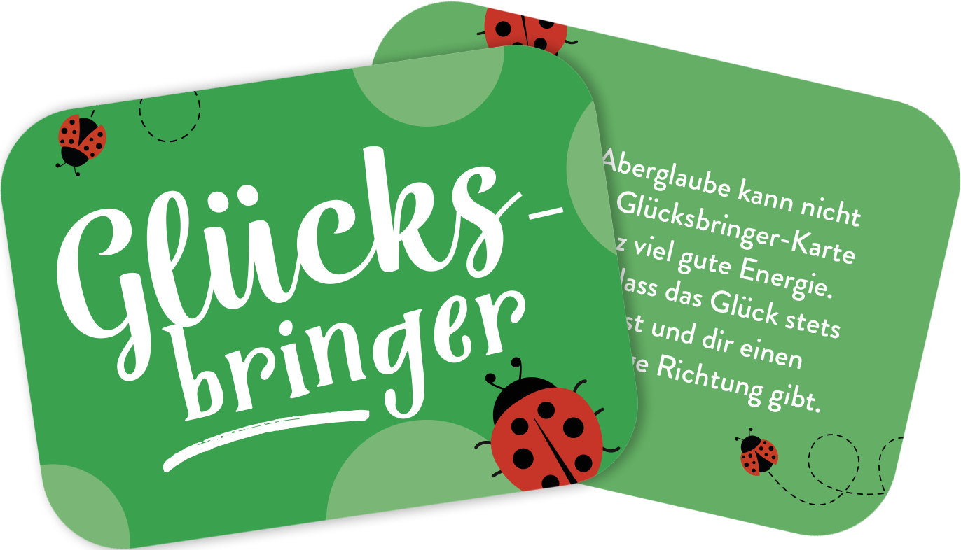 Die Glückskarten können einzeln oder in der praktischen Geschenkdose verschenkt und wie eine Kreditkarte ganz einfach in den Geldbeutel gesteckt werden, so dass sie einen jederzeit begleiten. Die guten Wünsche sorgen für viel gute Laune, Motivation und Inspiration.