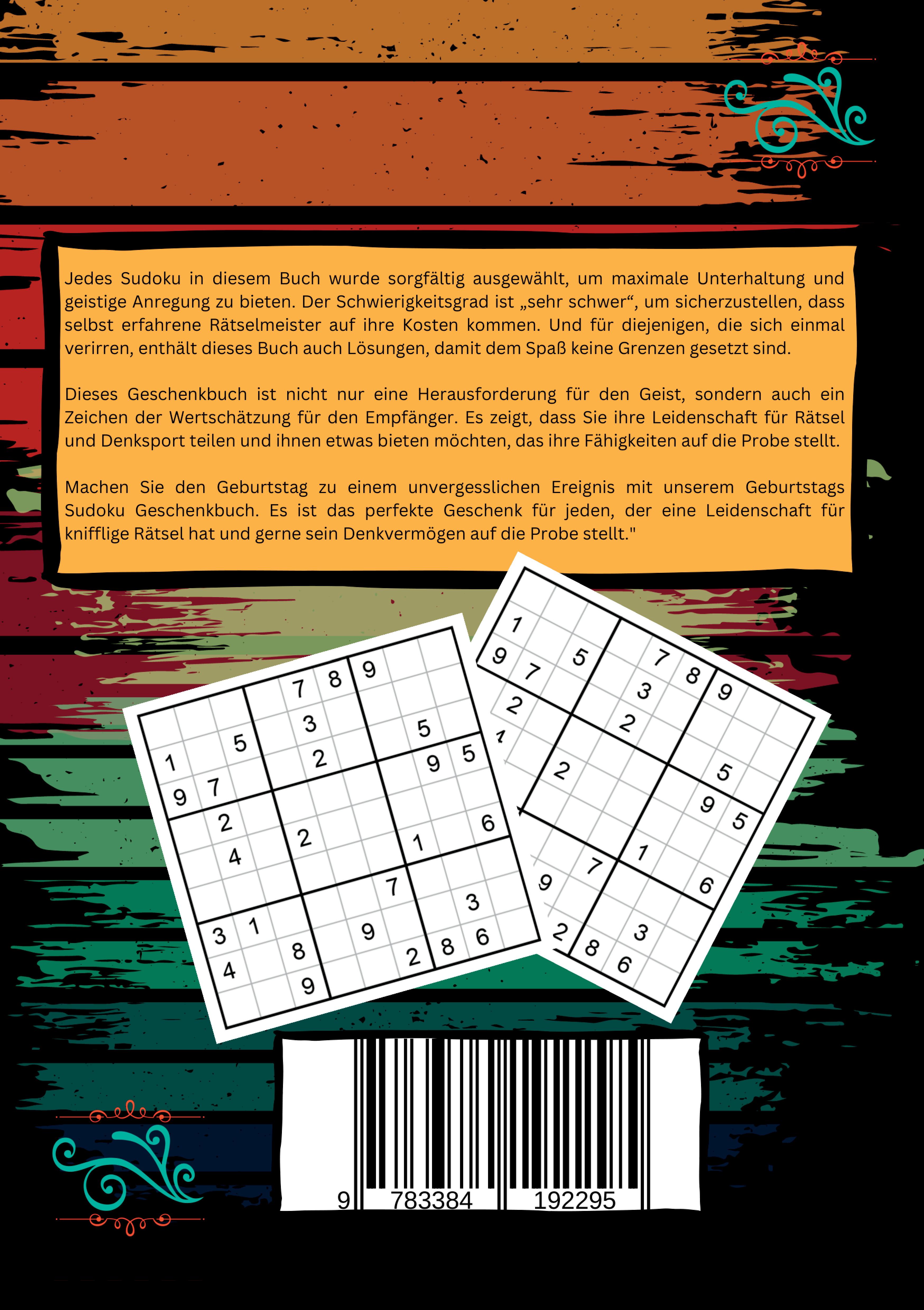Alles Gute zum 19. Geburtstag- Ein Sudoku Geschenkbuch."Feiern Sie den 19. Geburtstag mit einem Gehirntraining der Extraklasse! Unser Geburtstags Sudoku Geschenkbuch ist das ideale Präsent für jeden Sudoku-Enthusiasten, der eine echte Herausforderung sucht. Mit 100 kniffligen Sudokus, die speziell für diesen besonderen Anlass ausgewählt wurden, ist dieses Buch randvoll mit Stunden voller Denksport-Spaß.Jedes Sudoku in diesem Buch wurde sorgfältig ausgewählt, um maximale Unterhaltung und geistige Anregung zu bieten. Der Schwierigkeitsgrad ist "sehr schwer", um sicherzustellen, dass selbst erfahrene Rätselmeister auf ihre Kosten kommen. Und für diejenigen, die sich einmal verirren, enthält dieses Buch auch Lösungen, damit dem Spaß keine Grenzen gesetzt sind.Dieses Geschenkbuch ist nicht nur eine Herausforderung für den Geist, sondern auch ein Zeichen der Wertschätzung für den Empfänger. Es zeigt, dass Sie ihre Leidenschaft für Rätsel und Denksport teilen und ihnen etwas bieten möchten, das ihre Fähigkeiten auf die Probe stellt.Machen Sie den 19. Geburtstag zu einem unvergesslichen Ereignis mit unserem Geburtstags Sudoku Geschenkbuch. Es ist das perfekte Geschenk für jeden, der eine Leidenschaft für knifflige Rätsel hat und gerne sein Denkvermögen auf die Probe stellt."