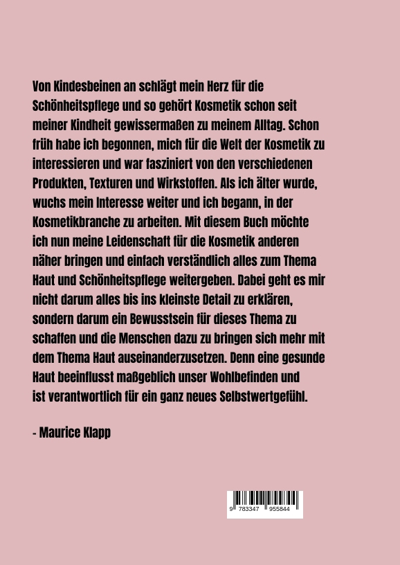 Von Kindesbeinen an schlägt mein Herz für die Schönheitsp ege und so gehört Kosmetik schon seit meiner Kindheit gewissermaßen zu meinem Alltag. Schon früh habe ich begonnen, mich für die Welt der Kosmetik zu interessieren und war fasziniert von den verschiedenen Produkten, Texturen und Wirksto en. Als ich älter wurde, wuchs mein Interesse weiter und ich begann, in der Kosmetikbranche zu arbeiten. Mit diesem Buch möchte ich nun meine Leidenschaft für die Kosmetik anderen näher bringen und einfach verständlich alles zum Thema Haut und Schönheitsp ege weitergeben. Dabei geht es mir nicht darum alles bis ins kleinste Detail zu erklären, sondern darum ein Bewusstsein für dieses Thema zu scha en und die Menschen dazu zu bringen sich mehr mit dem Thema Haut auseinanderzusetzen. Denn eine gesunde Haut beein usst maßgeblich unser Wohlbefinden undist verantwortlich für ein ganz neues Selbstwertgefühl.