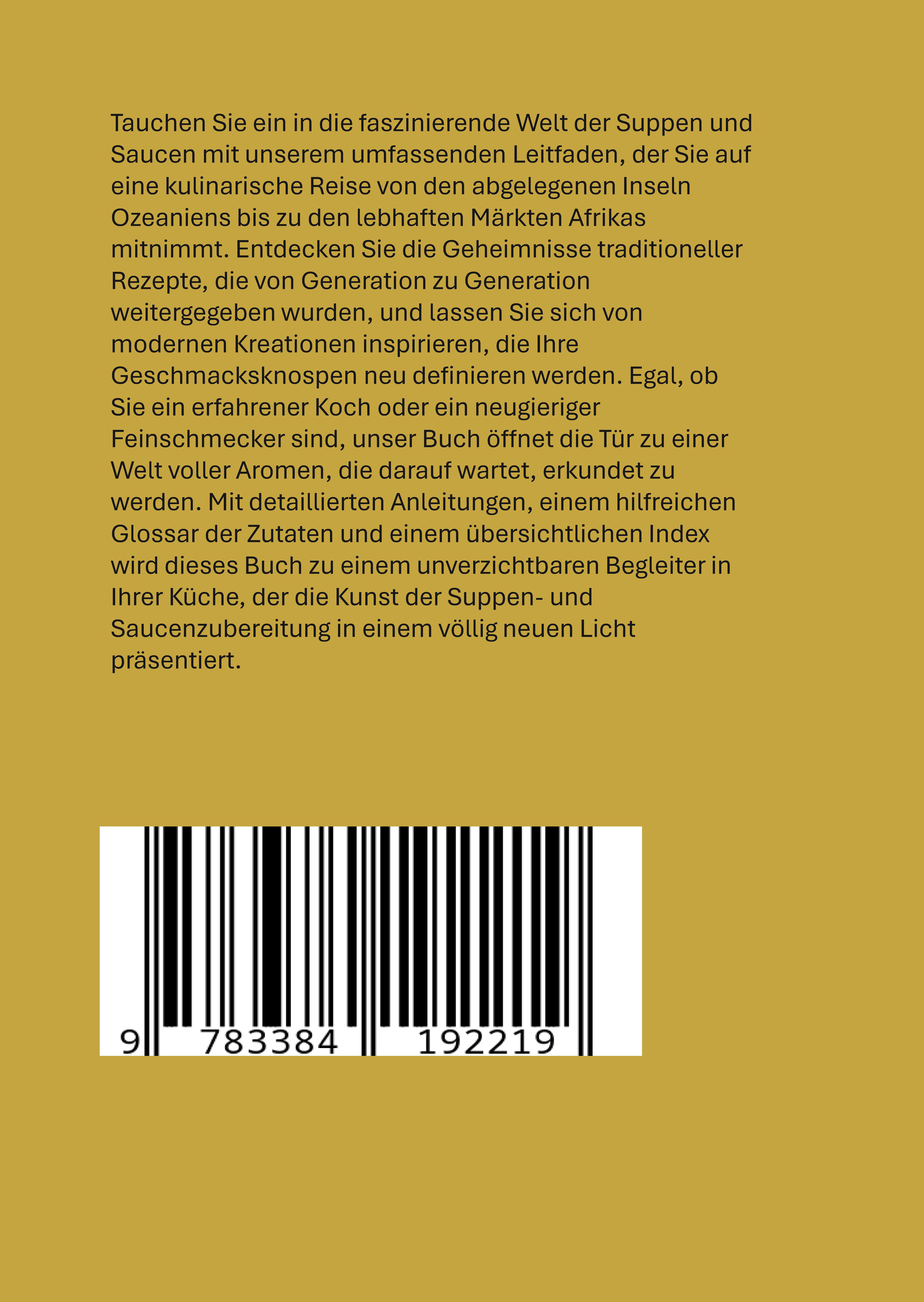 Rund um den Suppentopf: Die weltweit besten Saucen und Suppen - Eine globale Rezeptsammlung für traditionelle und moderne Küche" ist mehr als nur ein Kochbuch. Es ist eine Einladung, die Welt durch ihre Geschmäcker zu entdecken und die Kunst des Kochens zu zelebrieren. Dieses Buch führt Sie auf eine kulinarische Reise, die von den tiefen Aromen traditioneller Suppen bis hin zu den innovativen Nuancen moderner Saucen reicht.Entdecken Sie eine sorgfältig kuratierte Sammlung von Rezepten, die die kulinarische Vielfalt und den Reichtum verschiedener Kulturen einfängt. Jedes Rezept ist nicht nur eine Anleitung zum Kochen, sondern auch ein Fenster in die Kultur, aus der es stammt. Von der wärmenden Thai-Currysuppe bis zur raffinierten französischen Béchamelsauce, dieses Buch bietet etwas für jeden Geschmack.Neben den Rezepten bietet das Buch auch Geschichten und Hintergrundinformationen zu den Gerichten, Tipps zur Zubereitung und Vorschläge zur Anpassung an lokale Zutaten. Egal, ob Sie ein erfahrener Koch oder ein neugieriger Anfänger sind, dieses Buch wird Ihre Kochkünste bereichern und Ihren kulinarischen Horizont erweitern.Machen Sie sich bereit, Ihre Küche in einen Schmelztiegel globaler Aromen zu verwandeln und die verbindende Kraft des Essens zu erleben. "Rund um den Suppentopf" ist mehr als ein Kochbuch - es ist eine Ode an die universelle Sprache des Geschmacks.