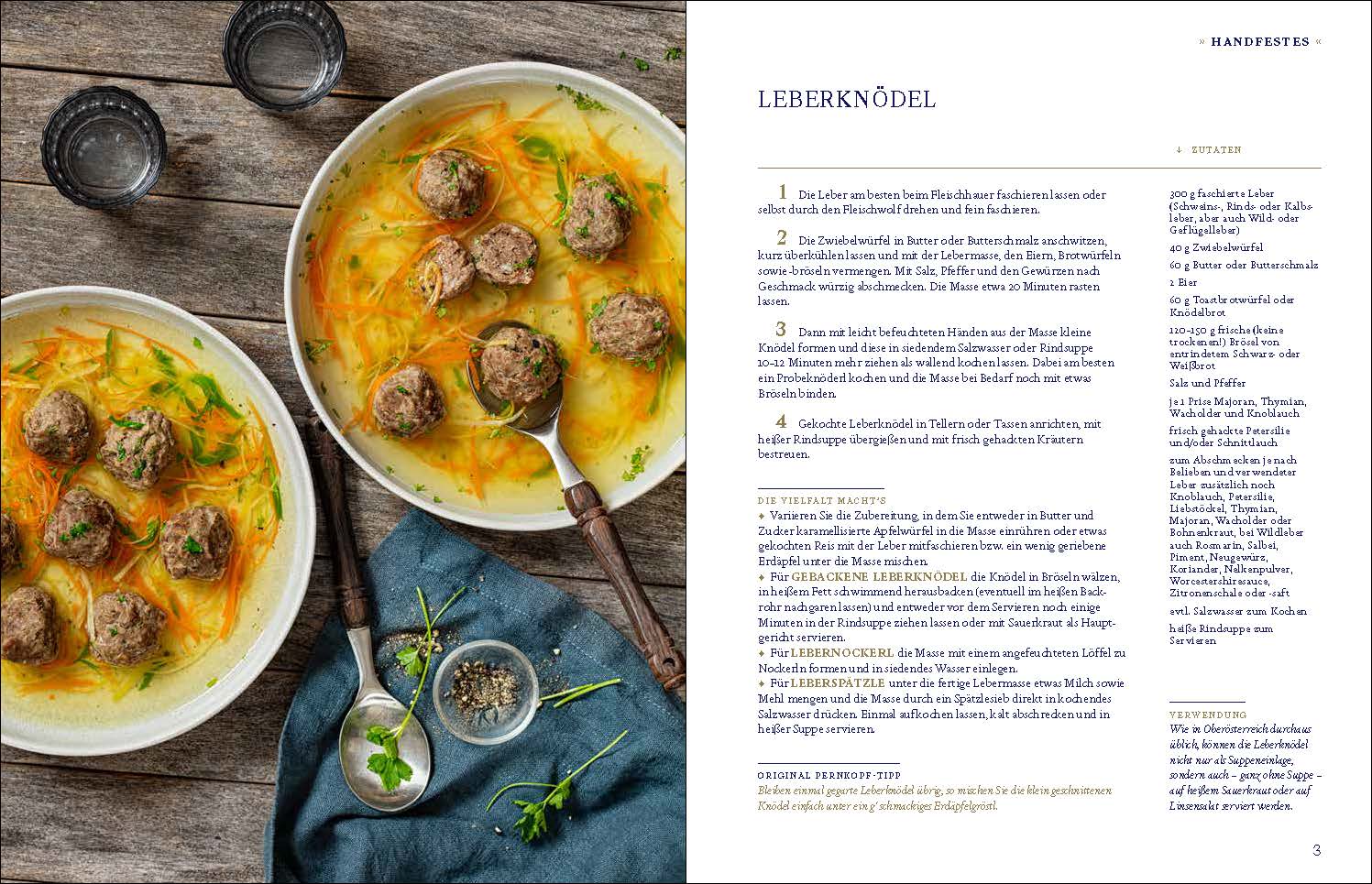 Ingrid Pernkopfs Kochbücher sind seit Jahrzehnten der Traum all jener, die gerne kochen und mit Freude essen: Variantenreiche Rezepte, sicheres Gelingen und Gerichte ohne Schnickschnack, die einfach schmecken, zeichnen das Vermächtnis der Gmundnerin aus. Dieses wird nun in einem wunderbaren Buch versammelt und von Renate Wagner-Wittula neu kuratiert vor den Vorhang geholt. Ein Standardwerk, das mit wärmenden Suppen und Gemüsegerichten, kräftigen Knödeln und herzhaften Strudeln, dem Besten aus der alltagstauglichen Fleischund Fischküche sowie nicht zuletzt ganz fantastischen Süßspeisen und Bäckereien aufwartet. Dieses - DAS - Pernkopf-Buch darf in keiner Küche fehlen!