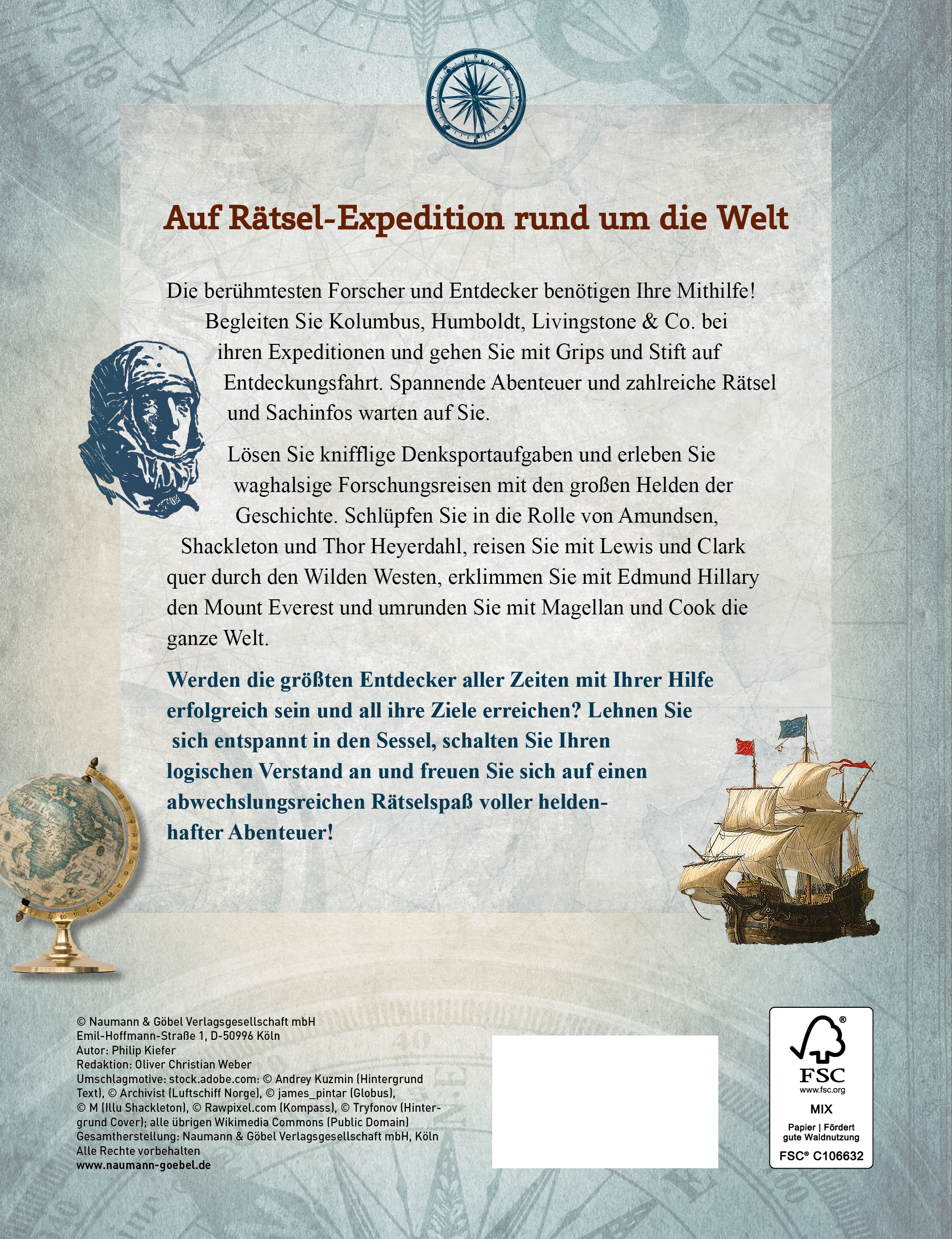 | Schlagworte | Abenteuer • Abenteuerrätsel • Abenteurer • alt • Amundsen • Bestsellerliste Spiegel • Buch • Bücher • Cook • Denksport • Doku • Entdeckung • Entspannung • Erde • Erforschung • Escape-Room • Expedition • Explore • Fernsehen • Forscher • Gedächtnis-Training • Gehirn-Jogging • Gehirn-Training • Geschenkbuch • Geschenk für Männer • Geschichte • Helden • historisch • History • Humboldt • IQ • John Franklin • Knobeln • Kolumbus • Kombinieren • Kontinente • Livingstone • Logik • Logikrätsel • Magellan • Marco Polo • Meere • Mitbringsel • Nansen • Naumann & Göbel Verlag • NGV • Nordpol • Ozeane • Polargebiete • Quiz • Raten • Rätsel • Rätselbuch • rätselbuch erwachsene • Rätseln • Rätsel Senioren • Scott • Seefahrt • Seereise • Shackleton • SPIEGEL-Bestseller • Spiegel Bestseller aktuell • Südpol • Sven Hedin • Thor Heyerdahl • TV • Umrundung • Umsegelung • unter 10 Euro • Welt |