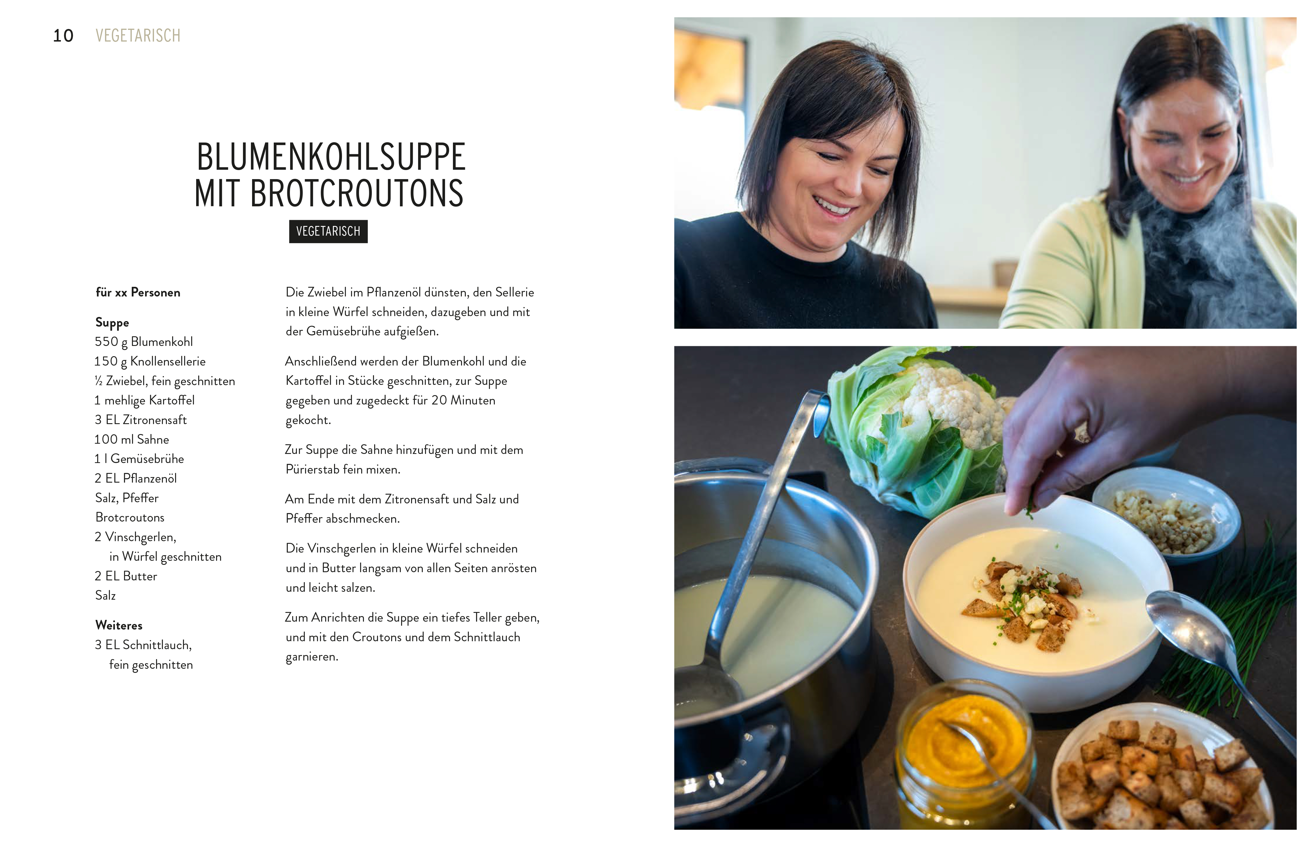 Ariane Prantl lebt mit ihrem Mann und den beiden Töchtern in Kaltern. Sie ist eine leidenschaftliche Köchin, vor allem das Backen und Verzieren von Torten bereitet ihr große Freude. Insbesondere Fisch- und Nudelgerichte zählen zu ihren Stärken. Genauso wie ihre Schwestern achtet sie stets darauf frisch und saisonal zu kochen. Schon im Jahr 2010 nahm Ariane an der "Küchenschlacht" teil, wurde 2017 erneut zu einer Spezialsendung eingeladen und konnte sie für sich entscheiden. Ariane ist experimentierfreudig und liebt es Neues auszuprobieren. Sie kocht nicht nur für die Familie, sondern gelegentlich auch für Hüttenlager und größere Gruppen. Es erfüllt sie mit Stolz, dass sich auch schon ihre Töchter fürs Kochen interessieren. Das Schreiben eines Kochbuchs mit ihrer Mutter und Schwestern bereitet ihr große Freude. Katharina Prantl lebt mit ihrem Mann und ihren zwei Kindern in Kaltern. Früh entwickelte sie ihre Leidenschaft fürs Kochen, während sie ihrer Mutter Irene und Oma Rosa in der Küche half. Als begeisterte Köchin verwöhnt sie gerne Freunde mit improvisierten Gerichten, wobei ihre Stärke im schnellen Zaubern von Mahlzeiten aus dem vorhandenen Vorrat liegt. Gerne kommen auch mal aufwendigere Gerichte auf den Tisch. Ein Höhepunkt in Katharinas kulinarischem Werdegang war die Teilnahme am Familienkochduell im deutschen Fernsehen mit ihren Schwestern und Mutter Irene. Die Möglichkeit, an einem Kochbuch mit ihrer Familie zu arbeiten, sieht Katharina als eine interessante Gelegenheit. Ziel ist es, Leser dazu zu inspirieren, Neues auszuprobieren und Freude am Kochen zu finden. Irene Prantl, lebt mit ihrem Mann Dietmar in St. Josef am See, Kaltern. Sie half schon früh ihrer Mutter im Haushalt und backte als Kind bereits ihre ersten Kuchen. Irene legt immer großen Wert auf gesundes und frisches Essen für ihre Familie. Der Achtsame Umgang mit Lebensmitteln ist ihr dabei besonders wichtig. Nach der Geburt ihrer Kinder wechselte die gelernte Verkäuferin in die Kindergartenküche und entdeckte ihre Freude am Kochen für kleine Feinschmecker. Im Kochbuch, das sie mit ihren drei Töchtern verfasst, teilt Irene nicht nur Familienrezepte, sondern auch ihre langjährigen Erfahrungen. Fest entschlossen, nicht nur die Familie, sondern viele andere Menschen für das Kochen zu begeistern, möchte sie die Freude am Genuss von gesundem und leckerem Essen vermitteln. Barbara Prantl lebt mit ihrem Mann und den beiden Kindern in St. Pauls, Eppan. Sie ist eine begeisterte Köchin, die täglich frische Mahlzeiten für ihre Familie zaubert. Das Kochen hat sie von ihrer Mutter gelernt und dabei eine tiefe Leidenschaft entwickelt. Gemeinsam mit ihrer Schwester Ariane hat sie erfolgreich an verschiedenen Kochshows im deutschen Fernsehen teilgenommen. Vor einigen Jahren begann Barbara, Kochvideos auf Instagram und Facebook zu teilen, um Menschen in den sozialen Medien zu inspirieren und neue Ideen für köstliche Gerichte zu liefern. Die Möglichkeit, ein Kochbuch zu schreiben, erfüllt sie mit Freude. Barbara möchte dadurch die kulinarische Welt auf eine zugängliche Weise bereichern und Menschen dazu ermutigen, Neues auszuprobieren, selbst in der Küche aktiv zu werden und den Spaß am Kochen zu entdecken.