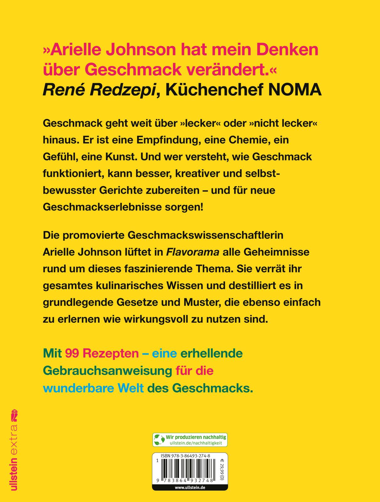 Dr. Arielle Johnson ist Geschmackswissenschaftlerin mit einem PhD in "Flavor". Für René Redzepi, den Chef des weltbesten Restaurants Noma, hat sie dessen Forschungslabor geleitet. Er empfiehlt ihr Buch: "Arielle hat mein Denken über Geschmack verändert, und in ihrem Buch wird sie das Gleiche für Sie tun." Auf ihrer Kundenliste stehen andere grosse Namen, z.B. Ferran Adria.