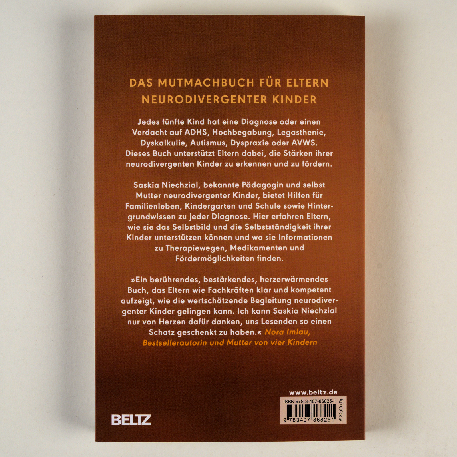»Saskia Niechzial schafft es auf eine unglaublich wertschätzende und zugleich lösungsorientierte Weise, die Fragen, Unsicherheiten und Sorgen von Eltern neurodivergenter Kinder zu formulieren und zu sortieren. Sie schreibt mit Herz und Verstand, mit großer Expertise und dabei immer auf Augenhöhe.« Dr. Susanne Götz-Schneck, Verlegerin und Mutter