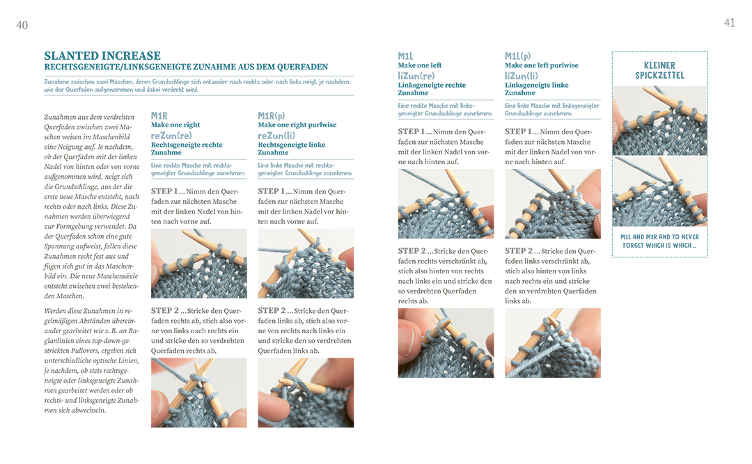 Mit diesem Buch werden diese Hürden nun ein für alle Mal aus dem Weg geräumt. Auf 96 Seiten werden nicht nur die gängigen Begriffe als Vokabeln schnell und auf einen Blick erklärt, sondern die dazugehörige Technikanleitung wird gleich mitgeliefert. M1L, ssk, k2tog, Italien Bind Off und vieles mehr werden Schritt für Schritt vorgestellt und auch so manche andere Besonderheit von englischsprachigen Anleitungen, wie zum Beispiel die internationale Garnstärkentabelle, wird noch einmal genauer beleuchtet. Dieses Buch haben Sie bald immer griffbereit und wird neben Ihrer neuen Lieblingsanleitung Ihr ständiger Begleiter im Projektbeutel oder Wollkorb.