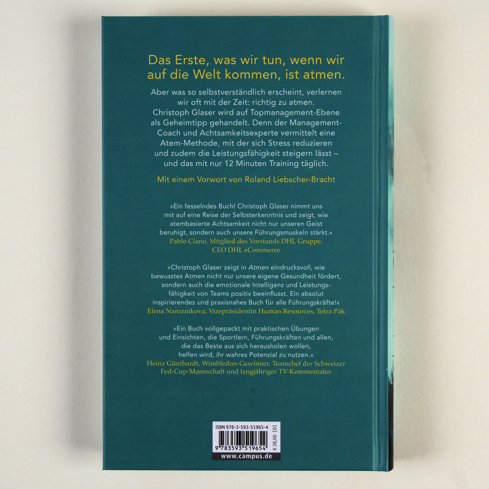 »Täglich 12 Minuten bewusst atmen und die Welt neu wahrnehmen: Christoph Glaser zeigt, wie Führungskräfte und Manager in einer zunehmend komplexen Welt Ruhe in ihren Körper und in ihr Denken bekommen. Die Botschaft: einfach atmen. Eine tolle Botschaft in einer schnelllebigen Zeit.« Roter Reiter