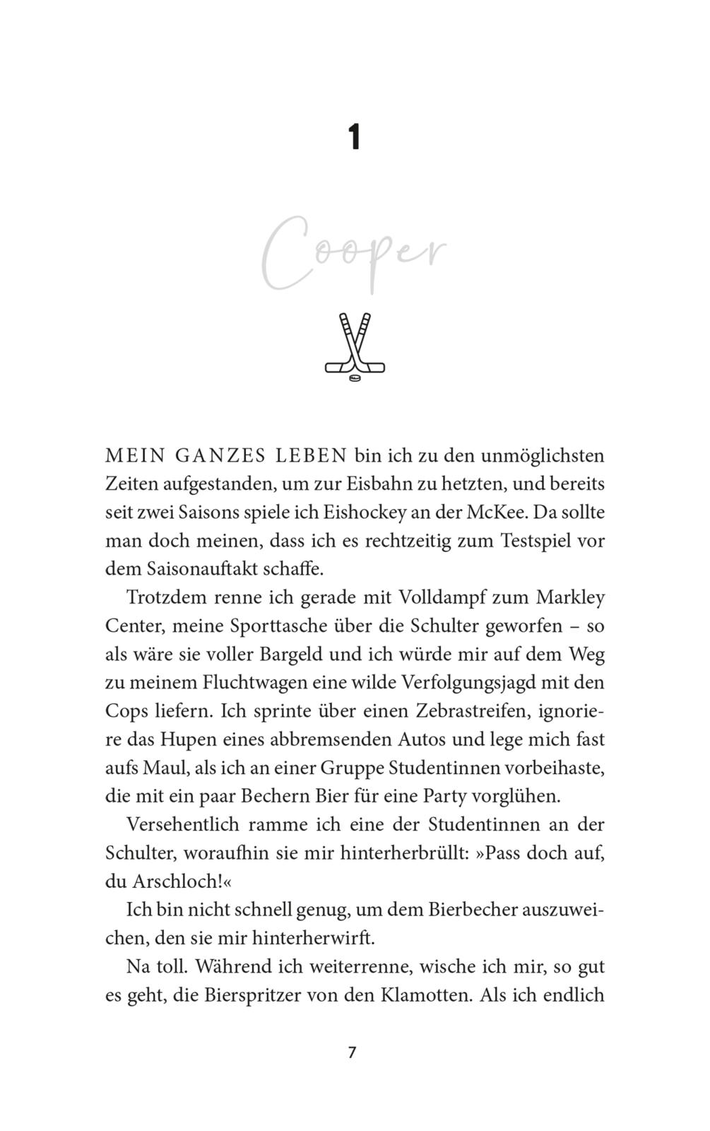 Sie ist die Tochter meines Trainers und damit absolut tabu. Aber seit sie mich auf der Eisbahn angesprochen hat, bekomme ich sie einfach nicht mehr aus dem Kopf. Sie will, dass ich ihr all die Dinge zeige, die sie im Bett erleben möchte. Wenn ich mich darauf einlasse, kann ich mich auf dem Eis vielleicht endlich wieder auf andere Dinge konzentrieren - doch wenn ihr Vater jemals davon erfährt, kann ich mich von meiner Chance Captain zu werden ein für alle Mal verabschieden ...