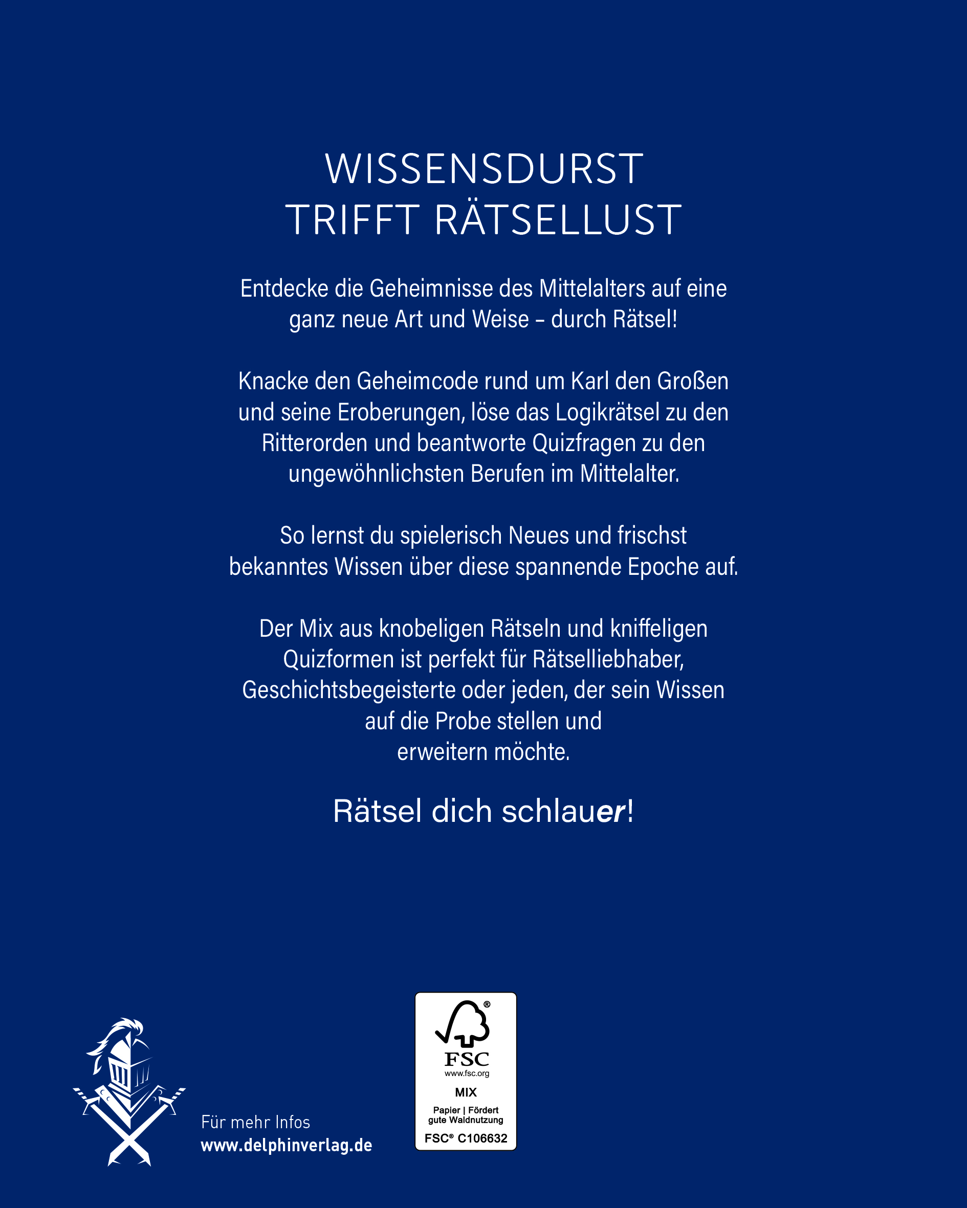 | Schlagworte | beschäftigung für senioren • Beschäftigung im Urlaub • Burgen • Delphin • Denksport • Entspannung • Gehirnjogging • geistige Fitness • Geschenk für Mittelalter-Fan • Geschenkidee • Geschenk Mann • Geschenk Mittelalterfan • Knobeln • Kreuzworträtsel • Mittelalter • Mittelalterfestival • Mittelalterliebhaber • Mittelaltermarkt • rätselbuch erwachsene • rätselbuch für rentner • Rätseln • Rätsel über Geschichte • Ritter • Ritterfans • Ritterorden • Sudoku • Wissen • Wissensspaß |