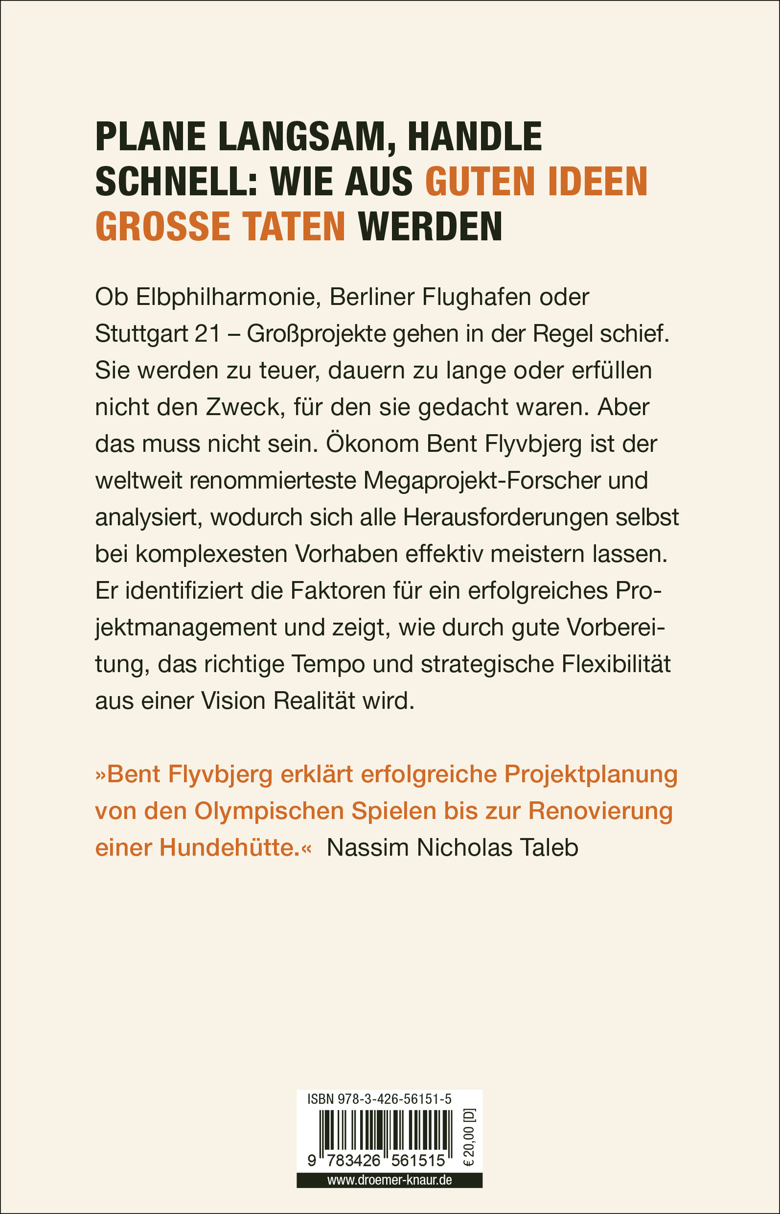 »Nachdem ich die Eigenschaften von Planungsfehlern untersucht habe, bin ich zuversichtlich, dass niemand das Thema breiter und tiefer studiert hat als Bent Flyvbjerg. Sein Fokus reicht von Olympischen Spielen bis zur Renovierung Ihrer Hundehütte.« Nassim Nicholas Taleb
