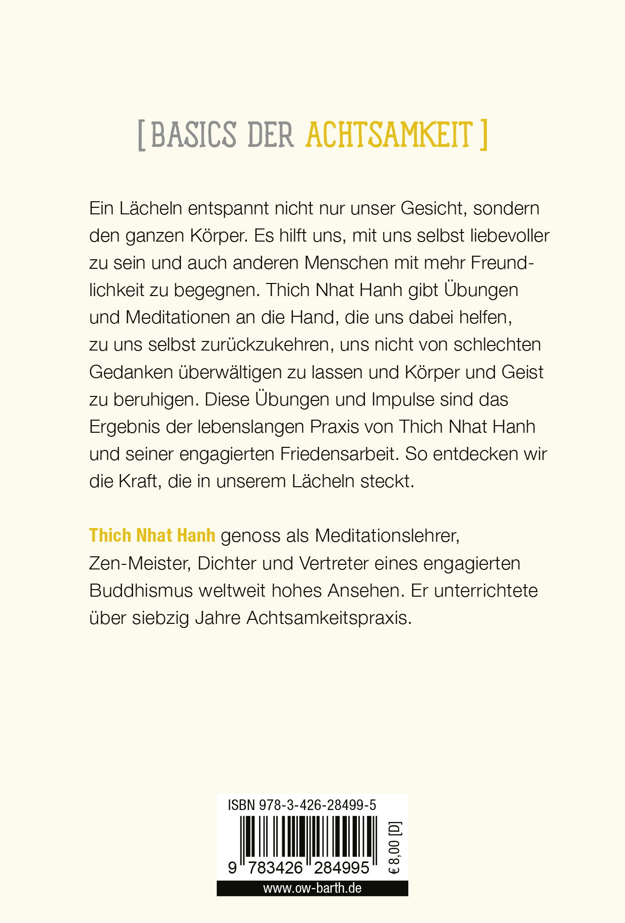 Diese Meditationen und Achtsamkeitsübungen sind das Ergebnis seiner lebenslangen Zen-Praxis und engagierten Friedensarbeit. Mit ihnen als Leitfaden entdecken Sie die Kraft, die in Ihrem Lächeln steckt.