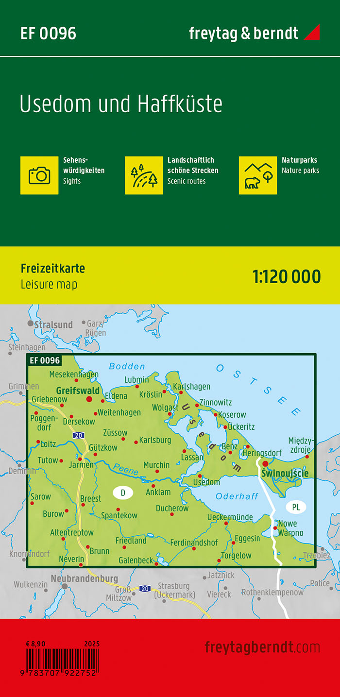 Usedom und Haffküste, Freizeitkarte 1:120.000, freytag & berndt