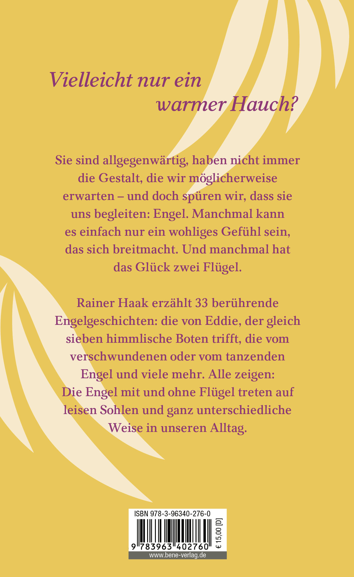 In diesem hübschen Geschenkbuch erzählt Rainer Haak 33 berührende Engelgeschichten, die zeigen, wie die himmlischen Boten auf ganz unterschiedliche Weise in unseren Alltag treten. Von den verschwundenen Engeln über die geheimnisvolle "Engelpost" bis hin zu Eddie, der gleich sieben göttliche Begleiter trifft - jede dieser Erzählungen ist ein Mutmacher und eine Erinnerung an die Leichtigkeit des Lebens.