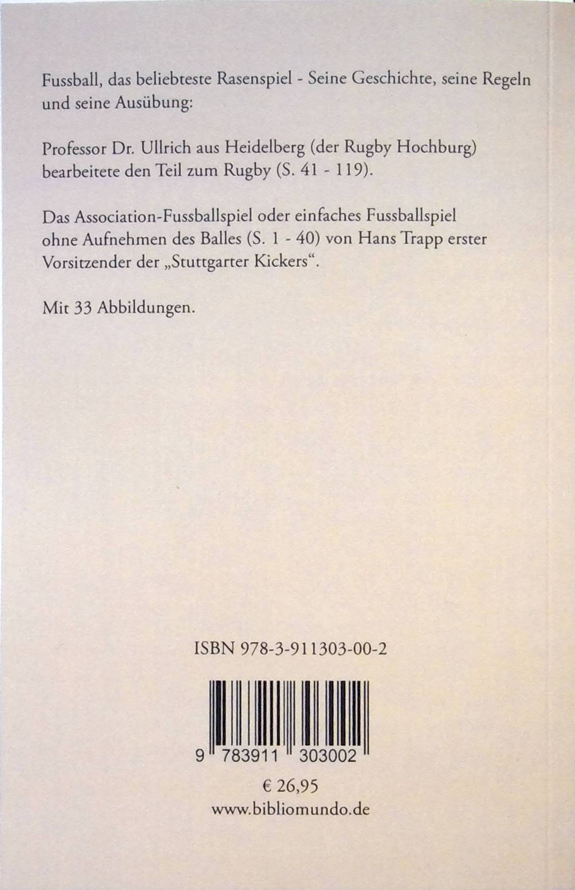 Professor Dr. Ullrich aus Heidelberg (der Rugby Hochburg) bearbeitete den Teil zum Rugby (S. 41 - 119).