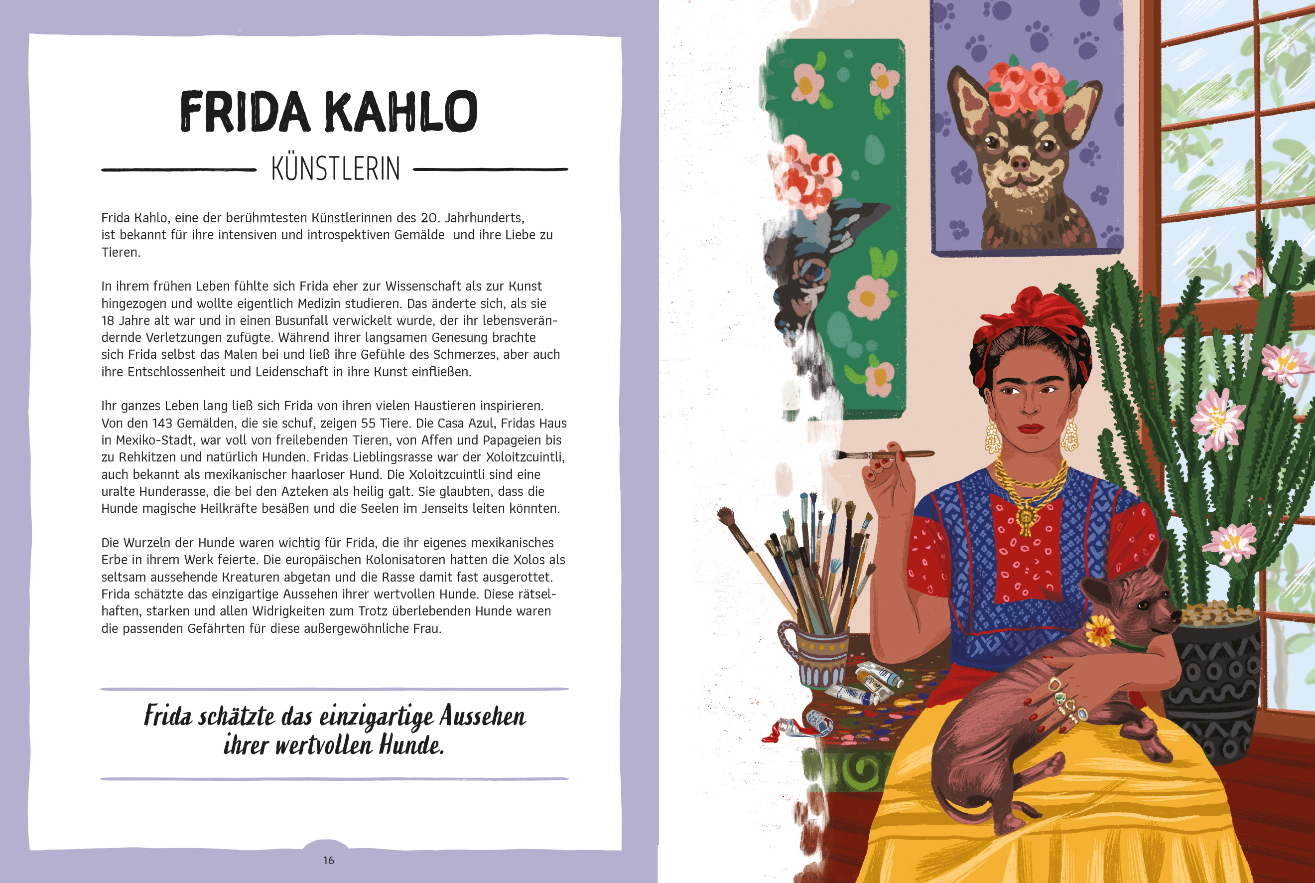 Künstlerinnen, Politikerinnen, Schriftstellerinnen – für Frauen aus allen Gesellschaftsschichten waren und sind Hunde Inspiration, Modell und treue Gefährten in jeder Lebenssituation. Hinreißende Illustrationen und spannende Geschichten porträtieren 30 prominente Frauen wie Frida Kahlo, Michelle Obama und Elizabeth II. und die Vierbeiner an ihrer Seite. Mit einer Vielzahl von Hunderassen und einem Test, um den passenden Begleiter für die eigene Pfote zu finden!