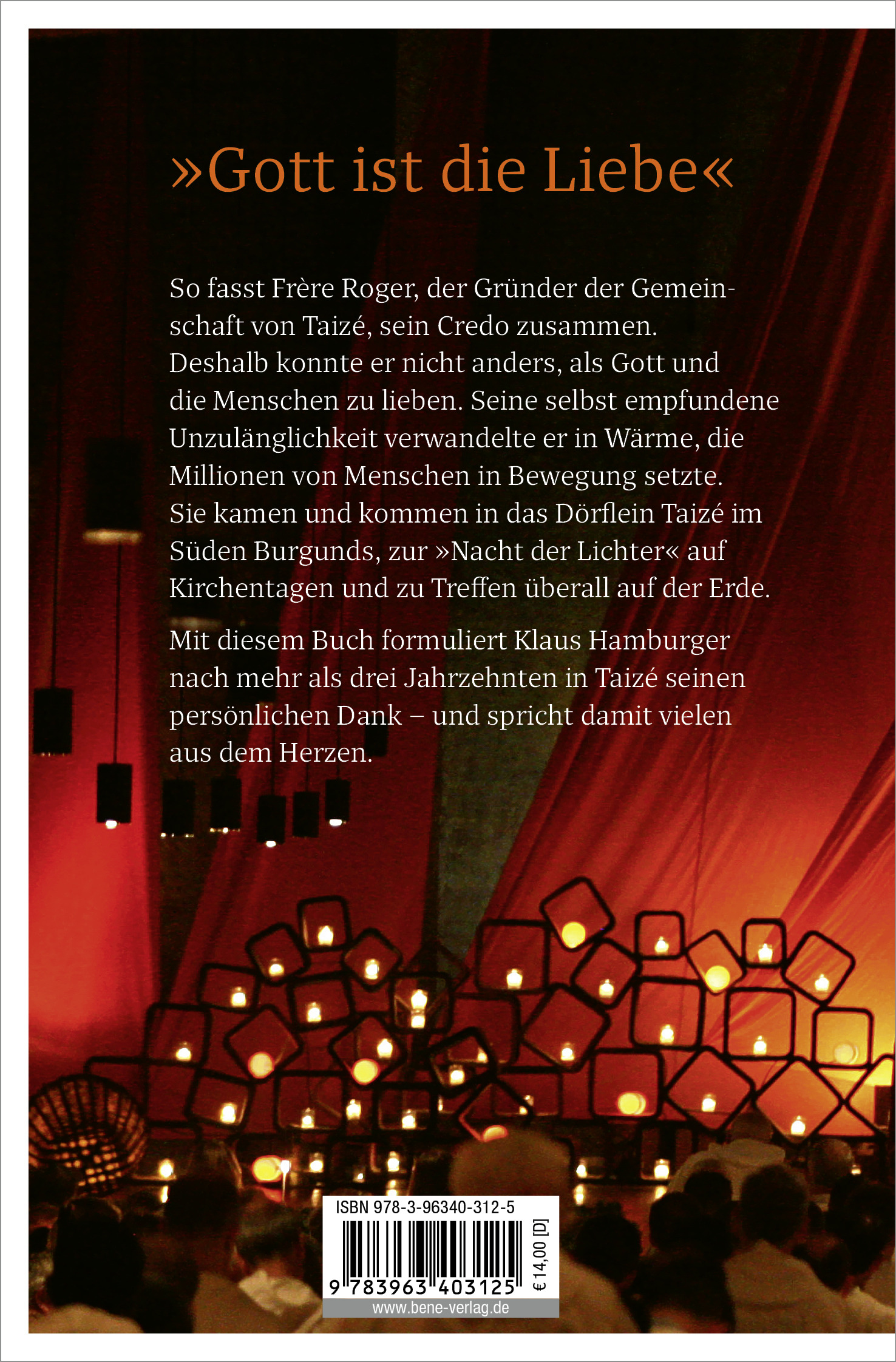 | Schlagworte | 75 Jahre Taize • 75. Jahre Taizé • Biografie Frère Roger • Christliche Bücher • christliche Kommunität • christliche Kommunitäten • christliche Pilgerstätten • christlicher Glaube im Alltag • Christliche Spiritualität • Communauté de Taizé • Erinnerungen an Frere Roger • Frere Roger • Frère Roger • frere roger taize • Frère Roger Weggefährten • Gott ist Liebe • Jugend von Taizé • Kommunität Taize • Kommunität Taizé • Kontemplation • Lieder von Taizé • Nacht der Lichter • Nacht der tausend Lichter • Ökumene • ökumenische Pilgerstätten • Pilgern • Pilgerorte Frankreich • Pilgerreisen • Pilgerstätten Frankreich • Roger Schutz • Spirituelle Gemeinschaft • Spirituelle Gemeinschaften • spirituelle Orte • Taize • Taizé • taize community • Taizé Jubiläum • Taize Lieder • Taizé Nacht der tausend Lichter • Versöhnung |