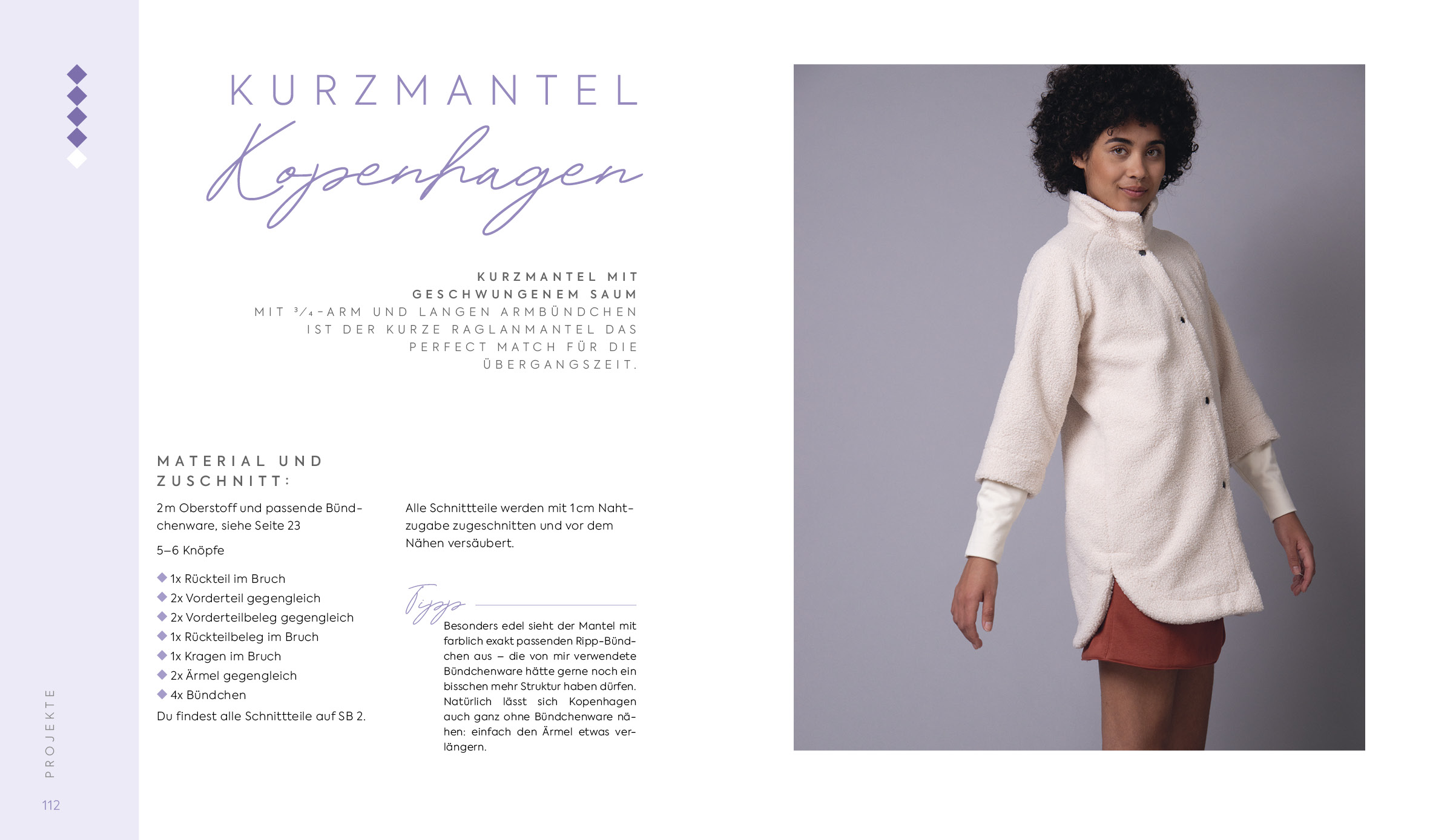 In den Grundlagen sorgen Materialkunde und bebilderte Nähtechniken dafür, dass auch Nähanfänger*innen ganz leicht zum Ziel kommen. Ein kleiner Exkurs zum Thema Farben hilft zusätzlich, die Modelle so zu gestalten, dass es echte Lieblinge werden, die wir tagein tagaus tragen wollen.