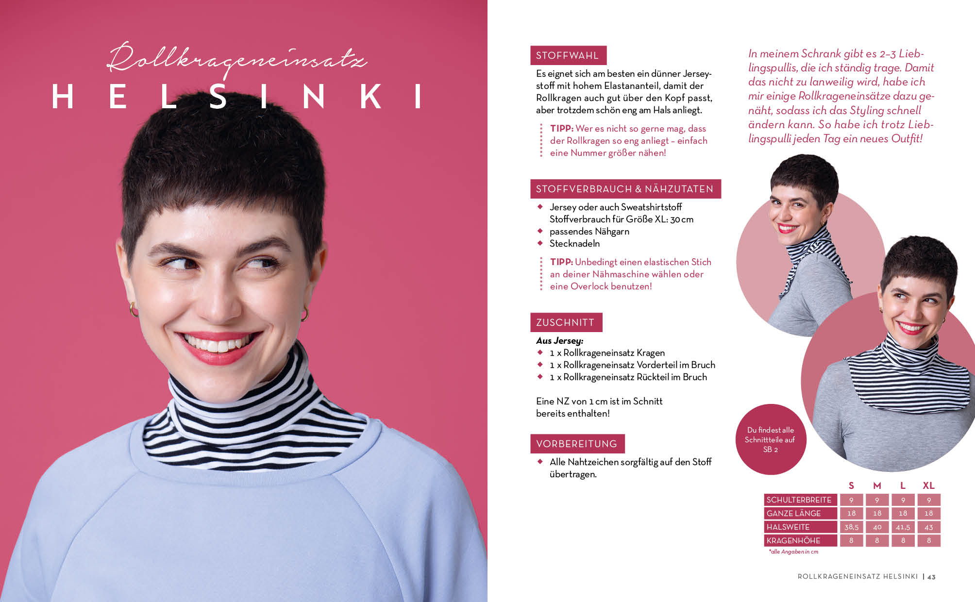 Vielfältige Nähideen: Von Fake-Kragen, die unter einem Pulli herausschauen, gemusterten Manschetten, die jeden Basic-Pulli aufwerten bis zu wärmenden Ärmelverlängerungen bietet das Buch 8 inspirierender Projekte in den Größen S-XL, um deine Garderobe aufzupeppen und zu individualisieren.
