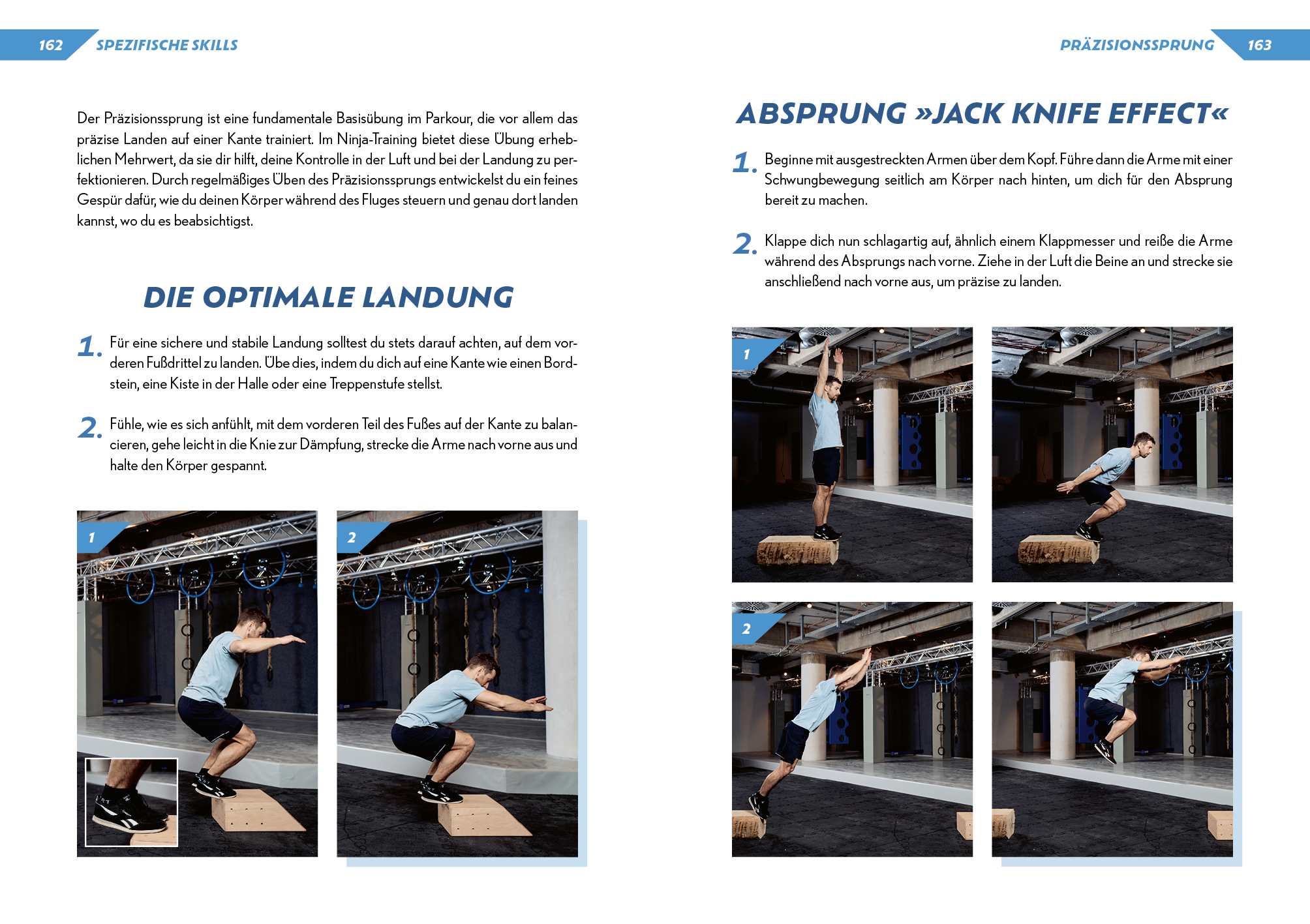 Erwecke den Ninja in dirHast du dich schon immer gefragt, wie die Teilnehmer der Show Ninja Warrior oder Parkourläufer diese waghalsigen und schwindelerregenden Hindernisse überwinden? Dann bist du hier genau richtig, denn der mehrmalige Showteilnehmer und Parkourtrainer Benni Grams zeigt dir Schritt für Schritt, wie auch du so fit, agil und schnell wirst.Back to the BasicsBevor du dich an irgendeine Art von Sprüngen oder Hindernissen wagen kannst, gilt es zunächst, die Grundlagen zu trainieren. Dabei stehen die Grundübungen für - Kraft, - Balance, - Schnelligkeit, - Ausdauer, - Körperspannung und - Hangeln auf dem Plan. Übe dich an Kniebeugen, Squats, Planks, Klimmzügen und dem Balancieren auf einer Stange, damit du die nötige Kraft und Stabilität in deiner Körpermitte aufbaust.Die Technik machtsDanach geht es ans Eingemachte und du beginnst mit den Special Skills, die dir helfen, Hindernisse und Sprünge leichtfüßig zu meistern. Benni zeigt dir, wie du - ausreichend Schwung an einer Stange holst und zur nächsten springst, - präzise landest, - effektiv Anlauf nimmst und - große Hindernisse wie die Himmelsleiter oder die Wand überwindest. Dabei ist die Technik das A und O, die in einfachen und bebilderten Schritt-für-Schritt-Anleitungen erklärt wird. In 12 Wochen zum ZielDarüber hinaus erhältst du zahlreiche Tipps und Tricks zum richtigen Aufwärmen und Cool-down, zu Verletzungsprävention und Griffarten sowie spannendes Insiderwissen aus der Show. Zusätzlich enthalten sind mehrere Trainingspläne für unterschiedliche Fitnesslevel, die sich zu einem 12-wöchigen Programm zusammensetzen lassen, in dem du alles lernst, was es braucht, um ein wahrer Warrior zu werden.