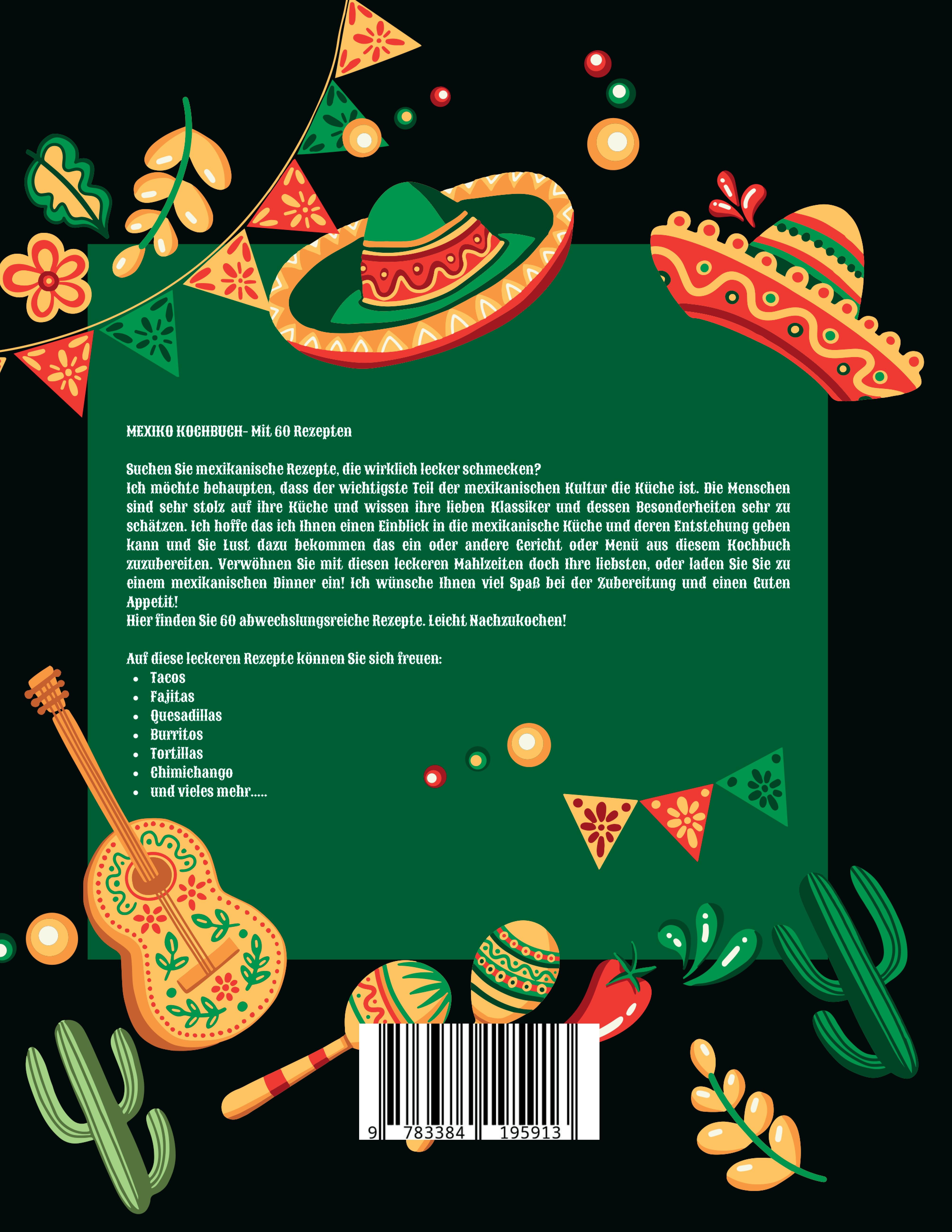MEXIKO KOCHBUCH- Mit 60 Rezepten.Suchen Sie mexikanische Rezepte, die wirklich lecker schmecken?Ich möchte behaupten, dass der wichtigste Teil der mexikanischen Kultur die Küche ist. Die Menschen sind sehr stolz auf ihre Küche und wissen ihre lieben Klassiker und dessen Besonderheiten sehr zu schätzen. Ich hoffe das ich Ihnen einen Einblick in die mexikanische Küche und deren Entstehung geben kann und Sie Lust dazu bekommen das ein oder andere Gericht oder Menü aus diesem Kochbuch zuzubereiten. Verwöhnen Sie mit diesen leckeren Mahlzeiten doch Ihre liebsten, oder laden Sie Sie zu einem mexikanischen Dinner ein! Ich wünsche Ihnen viel Spaß bei der Zubereitung und einen Guten Appetit!Hier finden Sie 60 abwechslungsreiche Rezepte. Leicht Nachzukochen!Auf diese leckeren Rezepte können Sie sich freuen: Tacos Fajitas Quesadillas Burritos Tortillas Chimichango süße Nachspeisen und vieles mehr.....Mein Bonus: Buch mit Buntdruck! Lecker und einfach...