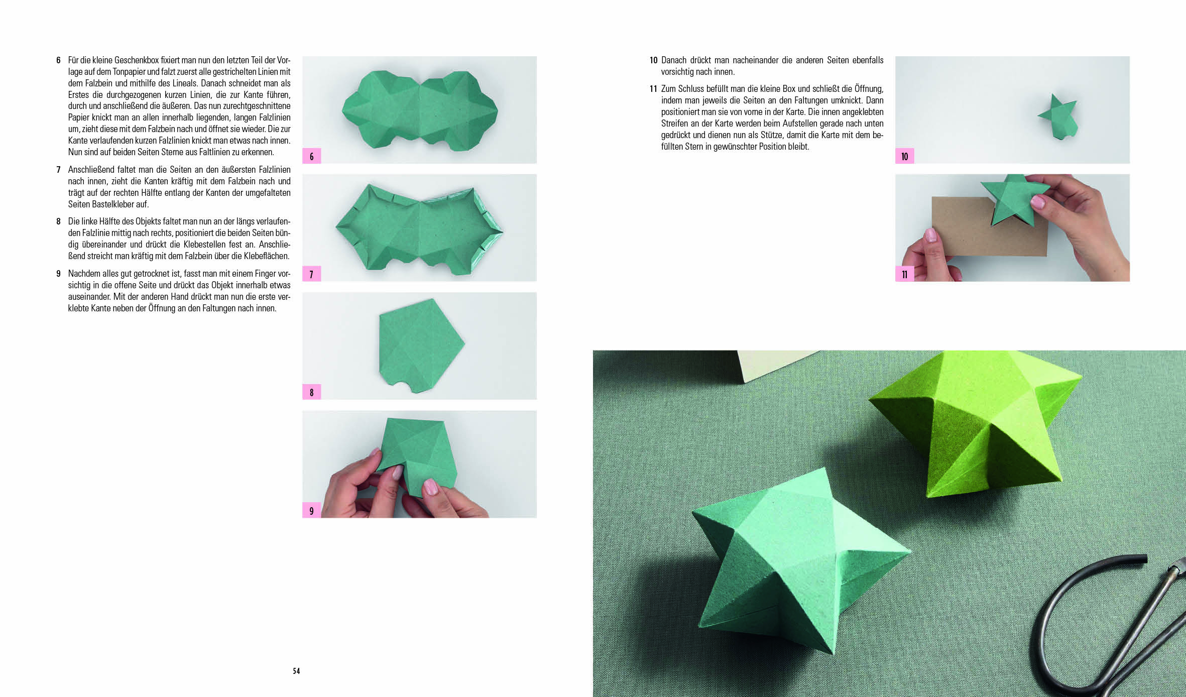 „Das Beste: Man benötigt fast keine weiteren Arbeitsmaterialien außer Schere, Kleber und Falzbein. Es besteht nur die Gefahr, gar nicht mehr aufhören zu wollen!“