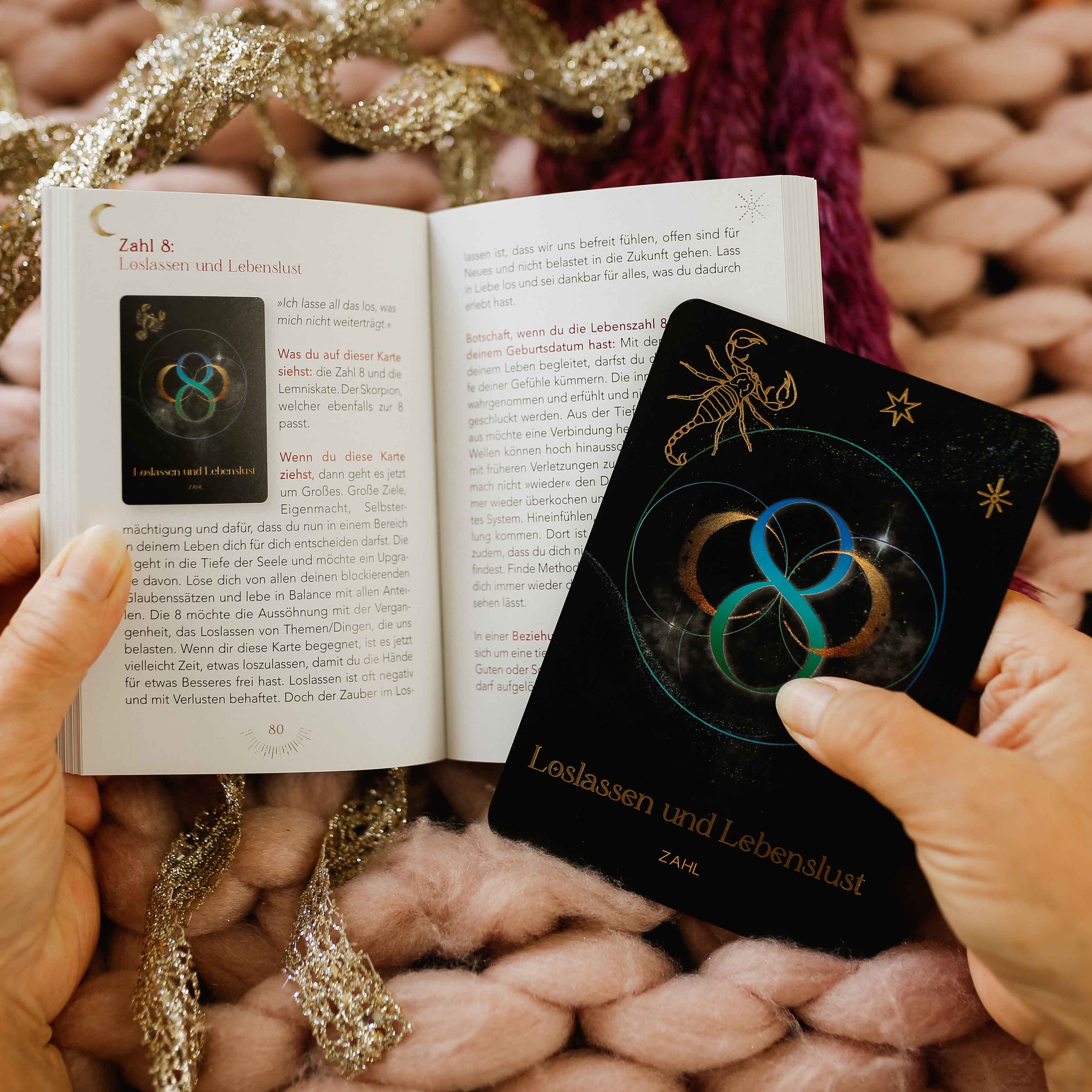 Die Cosmic Numbers führen dich in die geheimnisvolle Welt der Numerologie ein, die dir hilft, dich selbst, deine Welt und andere besser zu verstehen. Jeannette Ruh erklärt dir die Bedeutungen der Zahlen, ihre Symbole und Farben und wie du deine Lebenszahl berechnest. Sie beschreibt ausführlich die bekannten Meisterzahlen und Engelszahlen sowie Achsen und Ebenen in Geburtsdaten. Du erkennst die magischen Zusammenhänge der Numerologie zur Astrologie, den Ätherischen Ölen und dem Tarot. Entdecke 42 magische Zahlenkarten, inkl. Lebenszahlen, Meisterzahlen, Engelszahlen, Ebenen und Achsen. Deute mit ihrer Hilfe dein Geburtsdatum, ziehe spannende Impulse oder lass dich von den kreativen Legemustern inspirieren! - Spirituelles Trendthema Numerologie- Das erste moderne Kartendeck zum Thema- Faszinierende Illustrationen- Jeannette Ruh ist eine bekannte Numerologin und Influencerin- Hochwertige Ausstattung mit Metallicfolie auf Box und Karten sowie Metallic-Farbschnitt