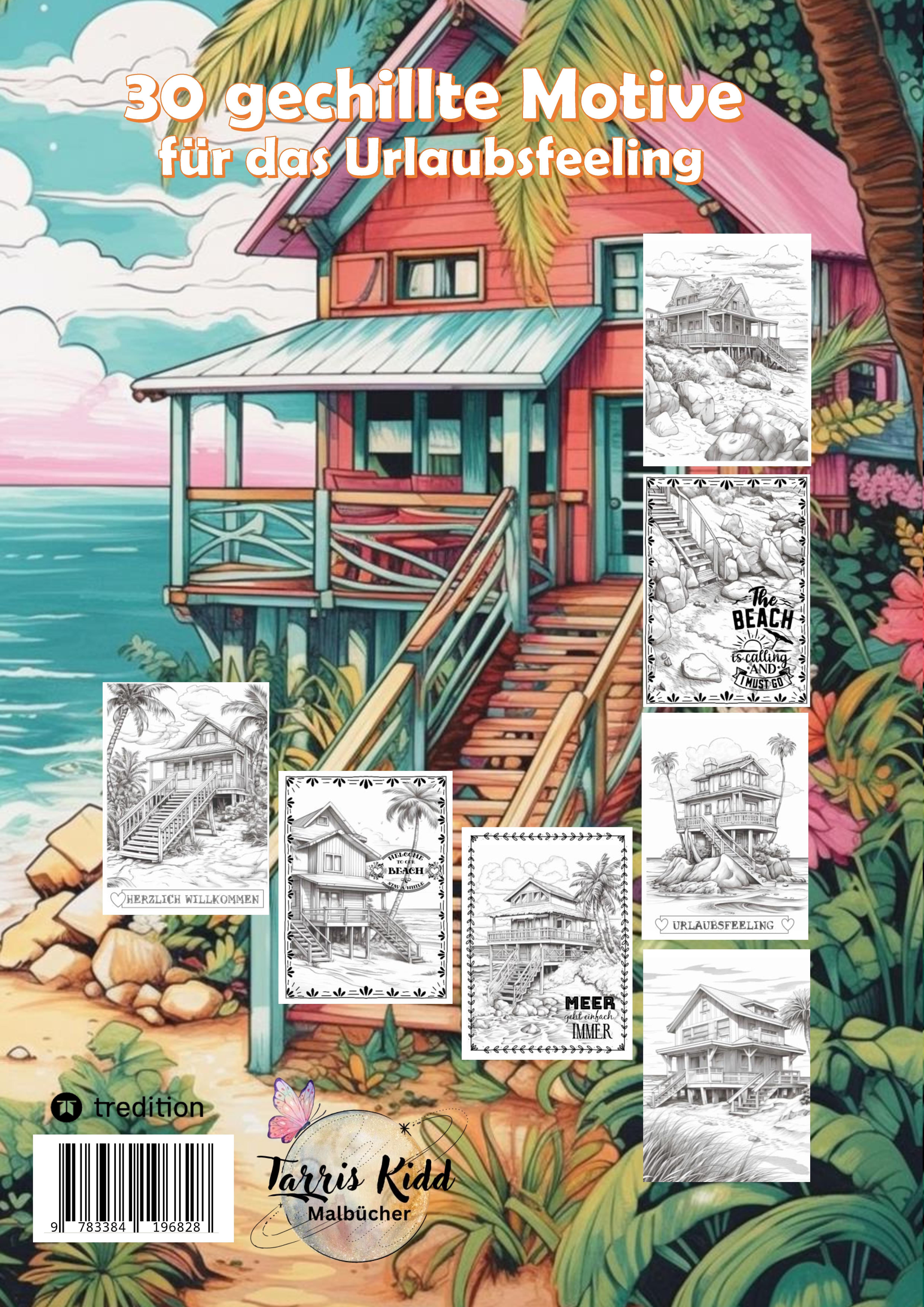 Tropische Strandhäuser Malbuch für Erwachsene - 30 gechillte Motive für das Urlaubsfeeling - Sommer Malbuch