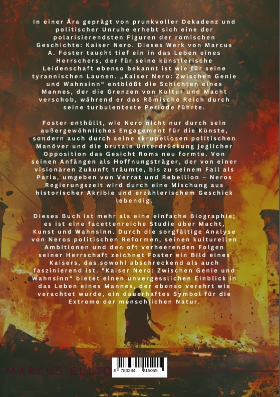 In einer Ära geprägt von prunkvoller Dekadenz und politischer Unruhe erhebt sich eine der polarisierendsten Figuren der römischen Geschichte: Kaiser Nero. Dieses Werk von Marcus A. Foster taucht tief ein in das Leben eines Herrschers, der für seine künstlerische Leidenschaft ebenso bekannt ist wie für seine tyrannischen Launen. "Kaiser Nero: Zwischen Genie und Wahnsinn" entblößt die Schichten eines Mannes, der die Grenzen von Kultur und Macht verschob, während er das Römische Reich durch seine turbulenteste Periode führte.Foster enthüllt, wie Nero nicht nur durch sein außergewöhnliches Engagement für die Künste, sondern auch durch seine skrupellosen politischen Manöver und die brutale Unterdrückung jeglicher Opposition das Gesicht Roms neu formte. Von seinen Anfängen als Hoffnungsträger, der von einer visionären Zukunft träumte, bis zu seinem Fall als Paria, umgeben von Verrat und Rebellion - Neros Regierungszeit wird durch eine Mischung aus historischer Akribie und erzählerischem Geschick lebendig.Dieses Buch ist mehr als eine einfache Biographie; es ist eine facettenreiche Studie über Macht, Kunst und Wahnsinn. Durch die sorgfältige Analyse von Neros politischen Reformen, seinen kulturellen Ambitionen und den oft verheerenden Folgen seiner Herrschaft zeichnet Foster ein Bild eines Kaisers, das sowohl abschreckend als auch faszinierend ist. "Kaiser Nero: Zwischen Genie und Wahnsinn" bietet einen unvergesslichen Einblick in das Leben eines Mannes, der ebenso verehrt wie verachtet wurde, ein dauerhaftes Symbol für die Extreme der menschlichen Natur.