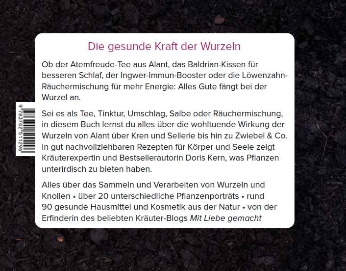 Ob der Atemfreude-Tee aus Alant, die Knochenheiler-Salbe vom Beinwell, das Baldrian-Kissen für besseren Schlaf, die Marshmallows vom Eibisch, der Knoblauch-Immun-Booster, die Löwenzahn-Räuchermischung für mehr Energie oder die After-Sun-Schüttellotion mit Karotte und Lavendel: Alles Gute fängt bei der Wurzel an.