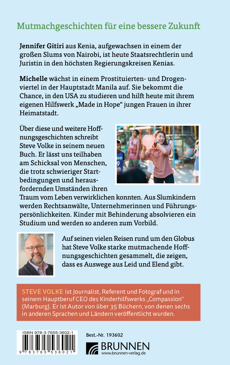 Auf seinen vielen Reisen rund um den Globus hat Steve Volke starke mutmachende Hoffnungsgeschichten gesammelt, die zeigen, dass es Auswege aus Leid und Elend gibt.