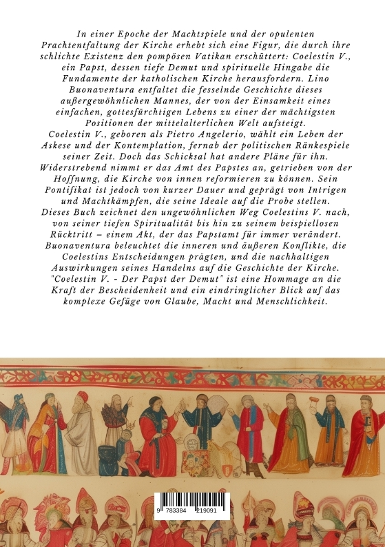 In einer Epoche der Machtspiele und der opulenten Prachtentfaltung der Kirche erhebt sich eine Figur, die durch ihre schlichte Existenz den pompösen Vatikan erschüttert: Coelestin V., ein Papst, dessen tiefe Demut und spirituelle Hingabe die Fundamente der katholischen Kirche herausfordern. Lino Buonaventura entfaltet die fesselnde Geschichte dieses außergewöhnlichen Mannes, der von der Einsamkeit eines einfachen, gottesfürchtigen Lebens zu einer der mächtigsten Positionen der mittelalterlichen Welt aufsteigt.Coelestin V., geboren als Pietro Angelerio, wählt ein Leben der Askese und der Kontemplation, fernab der politischen Ränkespiele seiner Zeit. Doch das Schicksal hat andere Pläne für ihn. Widerstrebend nimmt er das Amt des Papstes an, getrieben von der Hoffnung, die Kirche von innen reformieren zu können. Sein Pontifikat ist jedoch von kurzer Dauer und geprägt von Intrigen und Machtkämpfen, die seine Ideale auf die Probe stellen.Dieses Buch zeichnet den ungewöhnlichen Weg Coelestins V. nach, von seiner tiefen Spiritualität bis hin zu seinem beispiellosen Rücktritt - einem Akt, der das Papstamt für immer verändert. Buonaventura beleuchtet die inneren und äußeren Konflikte, die Coelestins Entscheidungen prägten, und die nachhaltigen Auswirkungen seines Handelns auf die Geschichte der Kirche. "Coelestin V. - Der Papst der Demut" ist eine Hommage an die Kraft der Bescheidenheit und ein eindringlicher Blick auf das komplexe Gefüge von Glaube, Macht und Menschlichkeit.