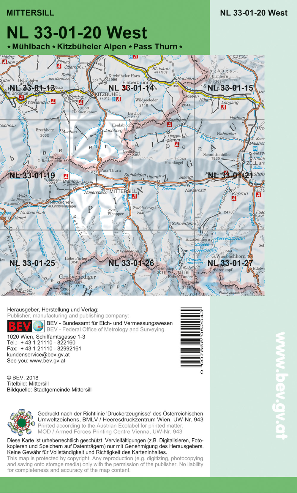 BEV-Karte 3220-West, Mittersill 1:25 000V