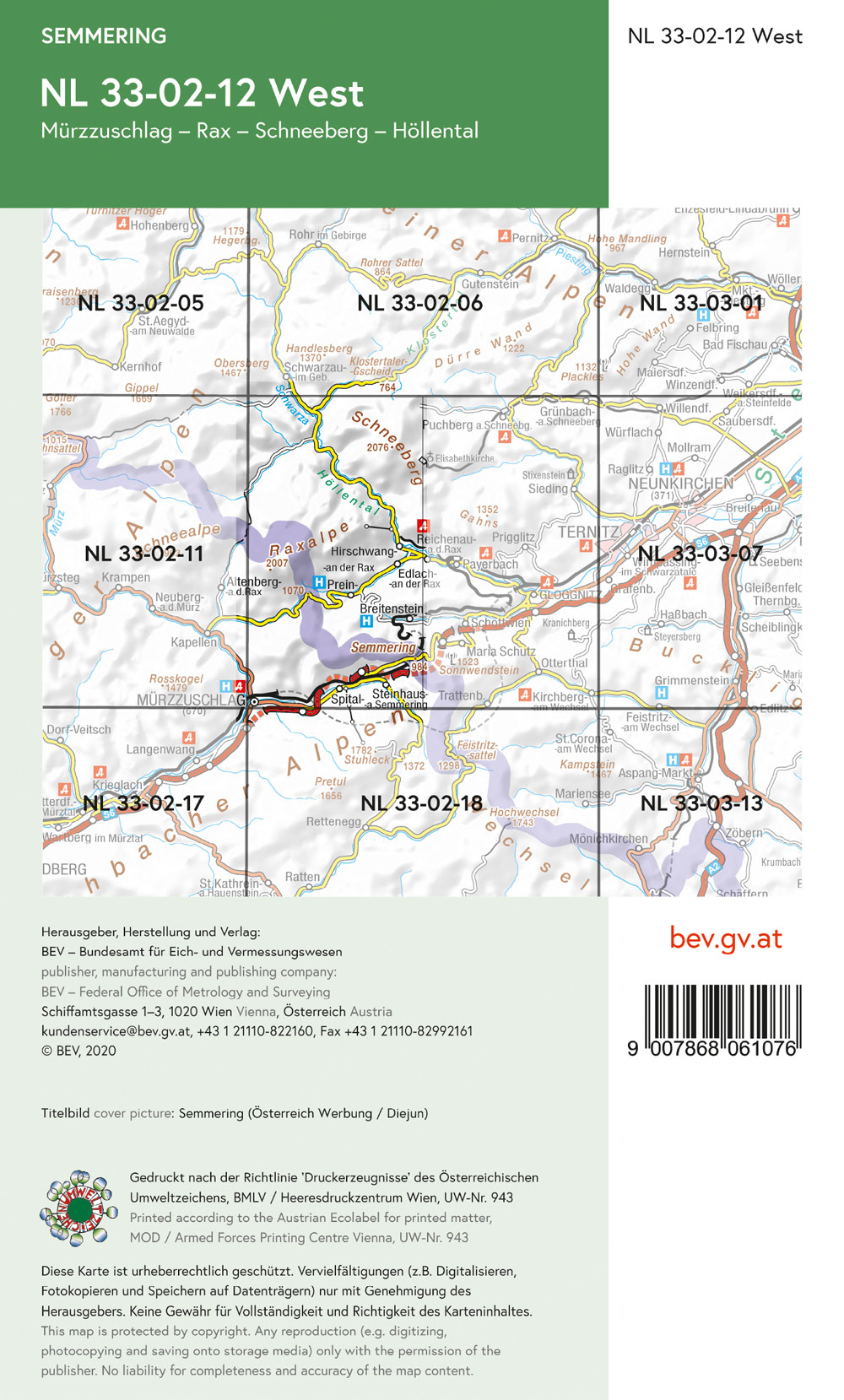 BEV-Karte 4212-West, Semmering 1:25 000V