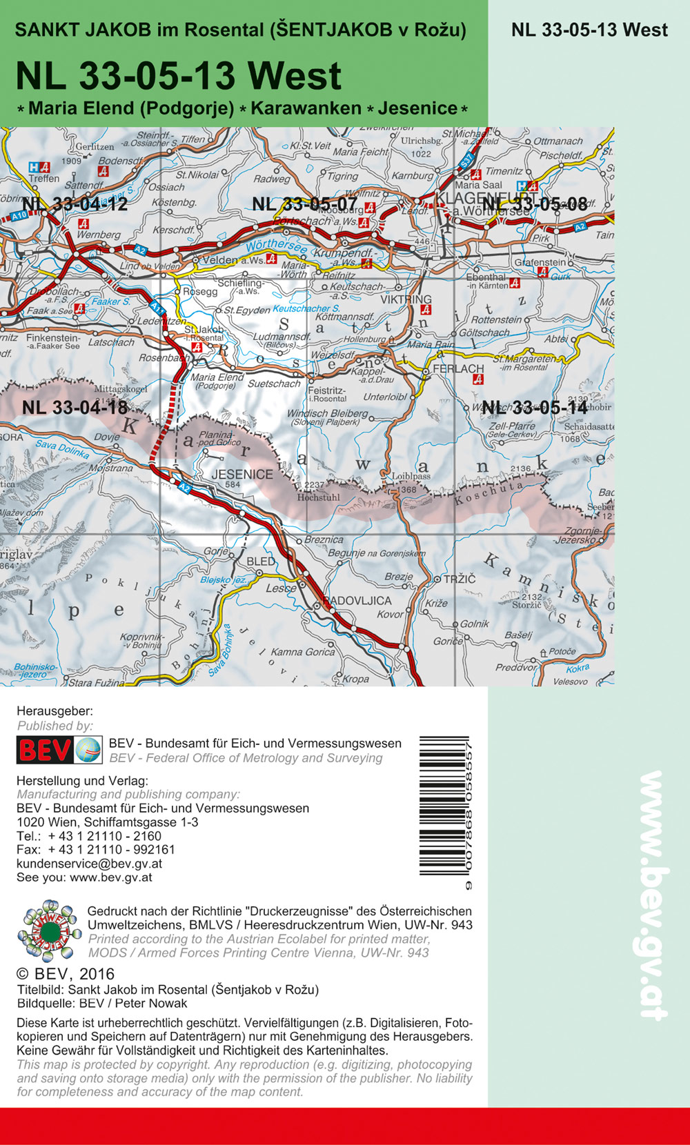 BEV-Karte 4113-West, St. Jakob im Rosental / Šentjakob v Rožu 1:25 000V
