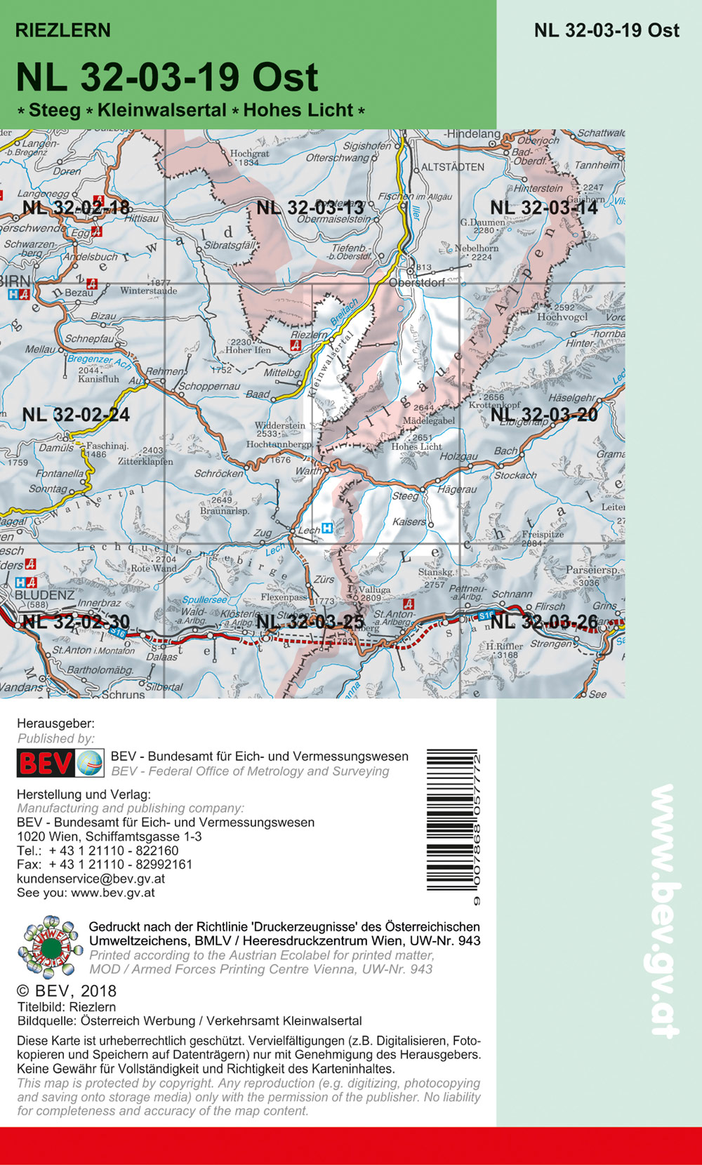 BEV-Karte 2219-Ost, Riezlern 1:25 000V
