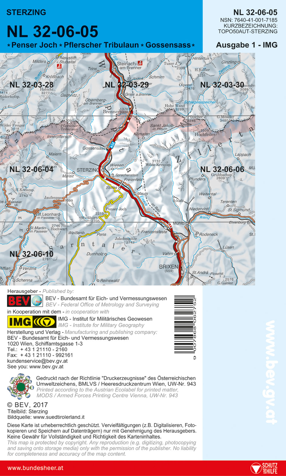 BEV-Karte 2105, Sterzing 1:50 000
