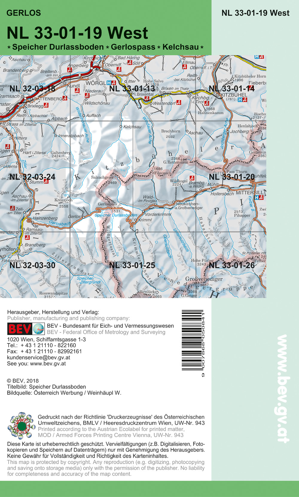 BEV-Karte 3219-West, Gerlos 1:25 000V