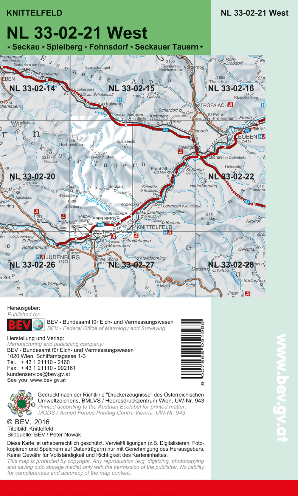 BEV-Karte 4221-West, Knittelfeld 1:25 000V