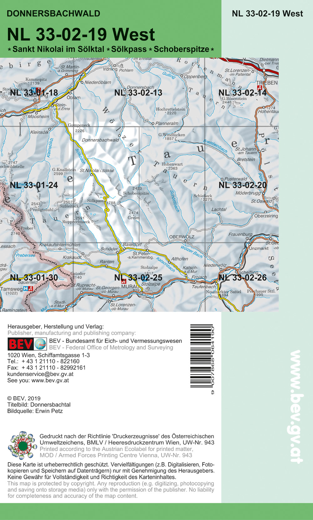 BEV-Karte 4219-West, Donnersbachwald 1:25 000V