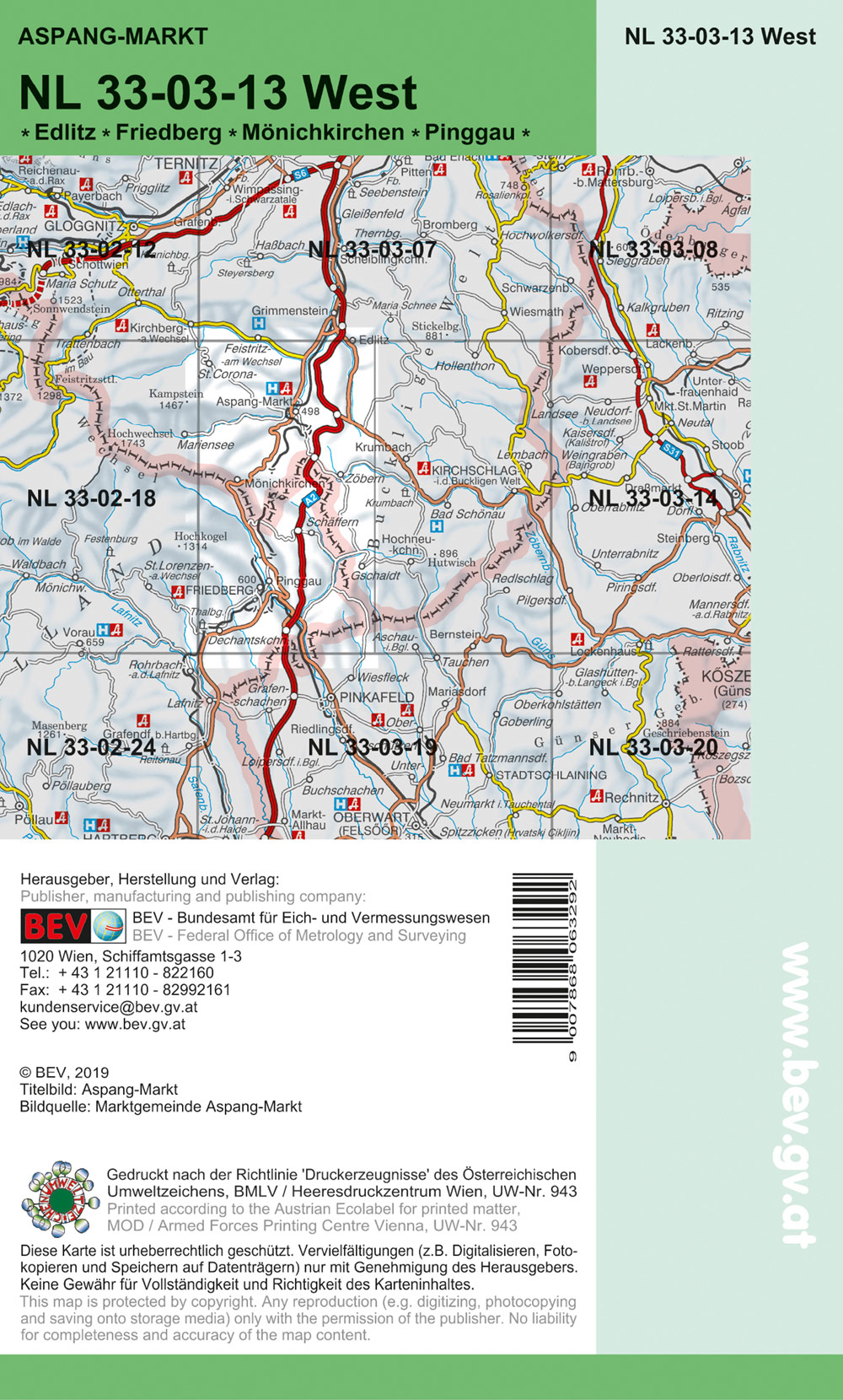 BEV-Karte 5213-West, Aspang-Markt 1:25 000V
