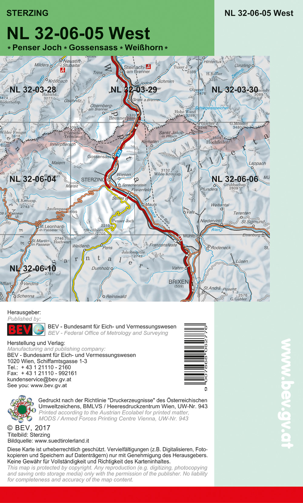 BEV-Karte 2105-West, Sterzing 1:25 000V