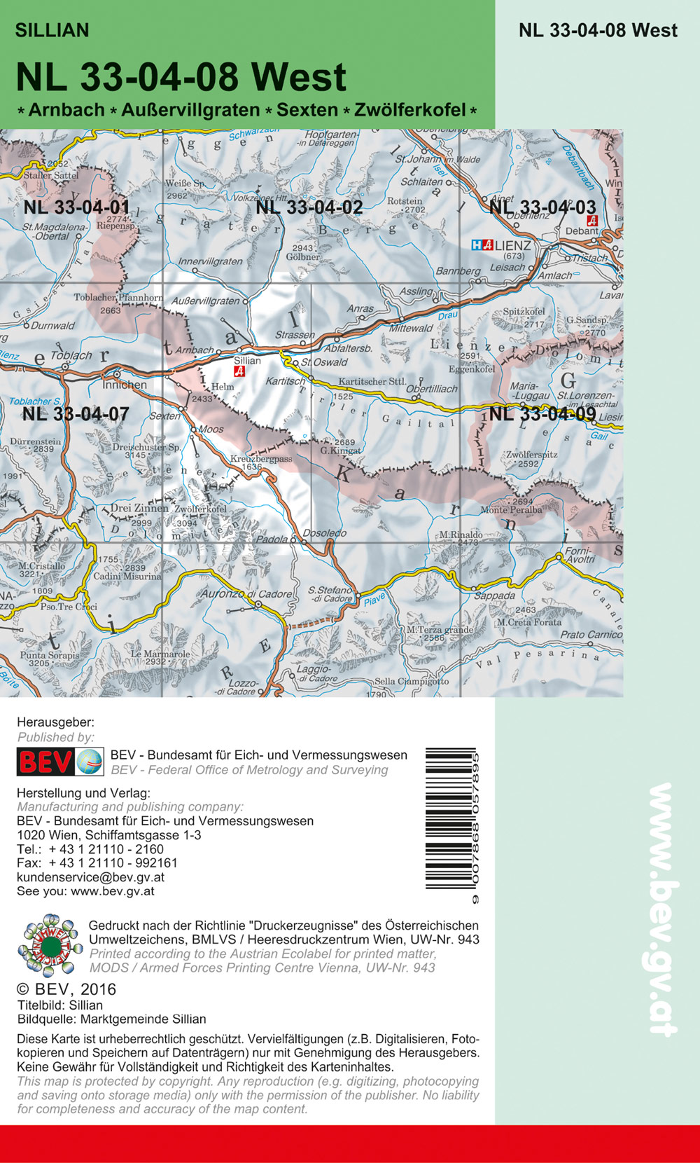BEV-Karte 3108-West, Sillian 1:25 000V
