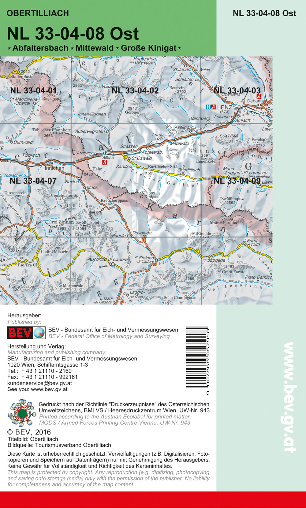 BEV-Karte 3108-Ost, Obertilliach 1:25 000V