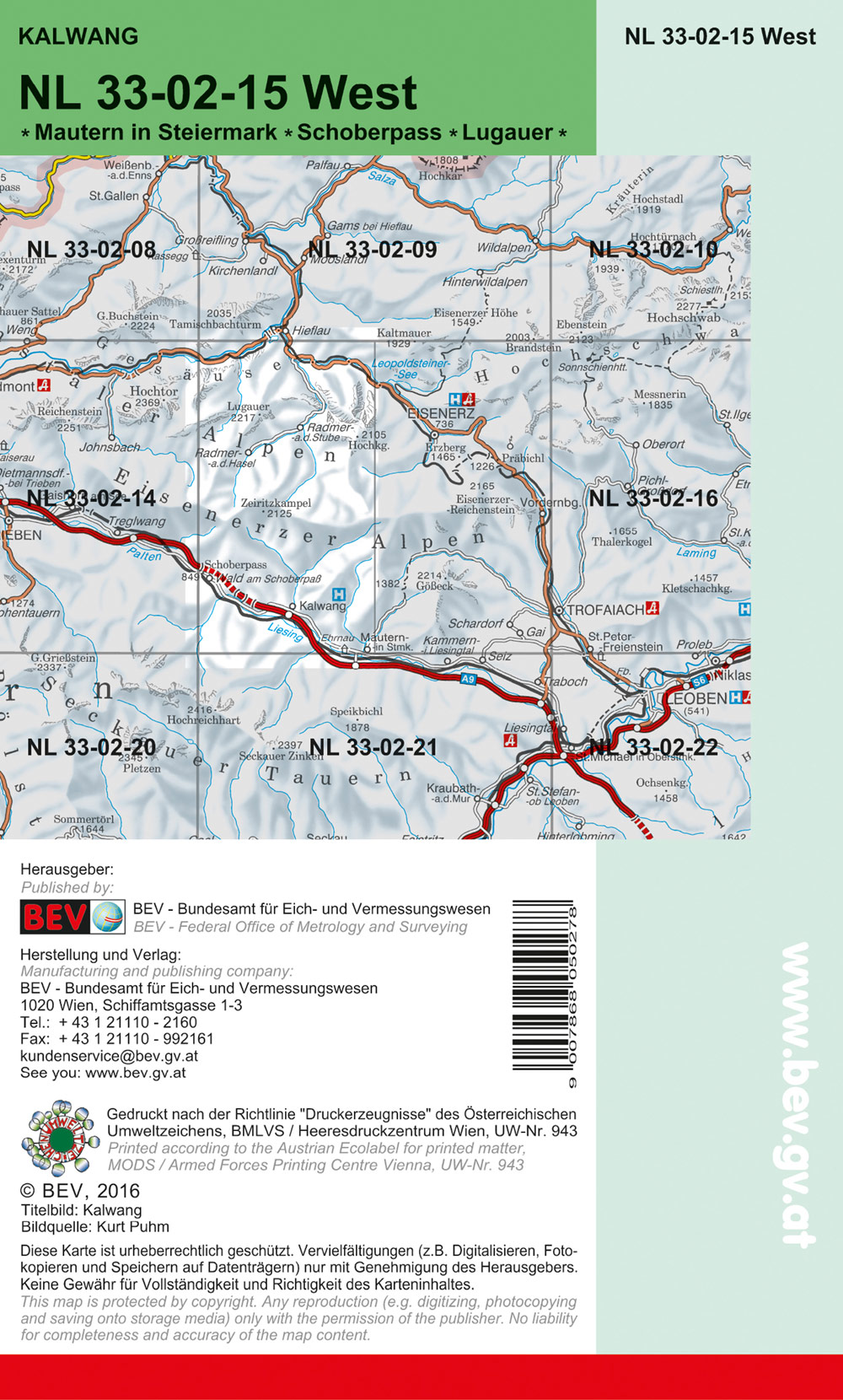 BEV-Karte 4215-West, Kalwang 1:25 000V