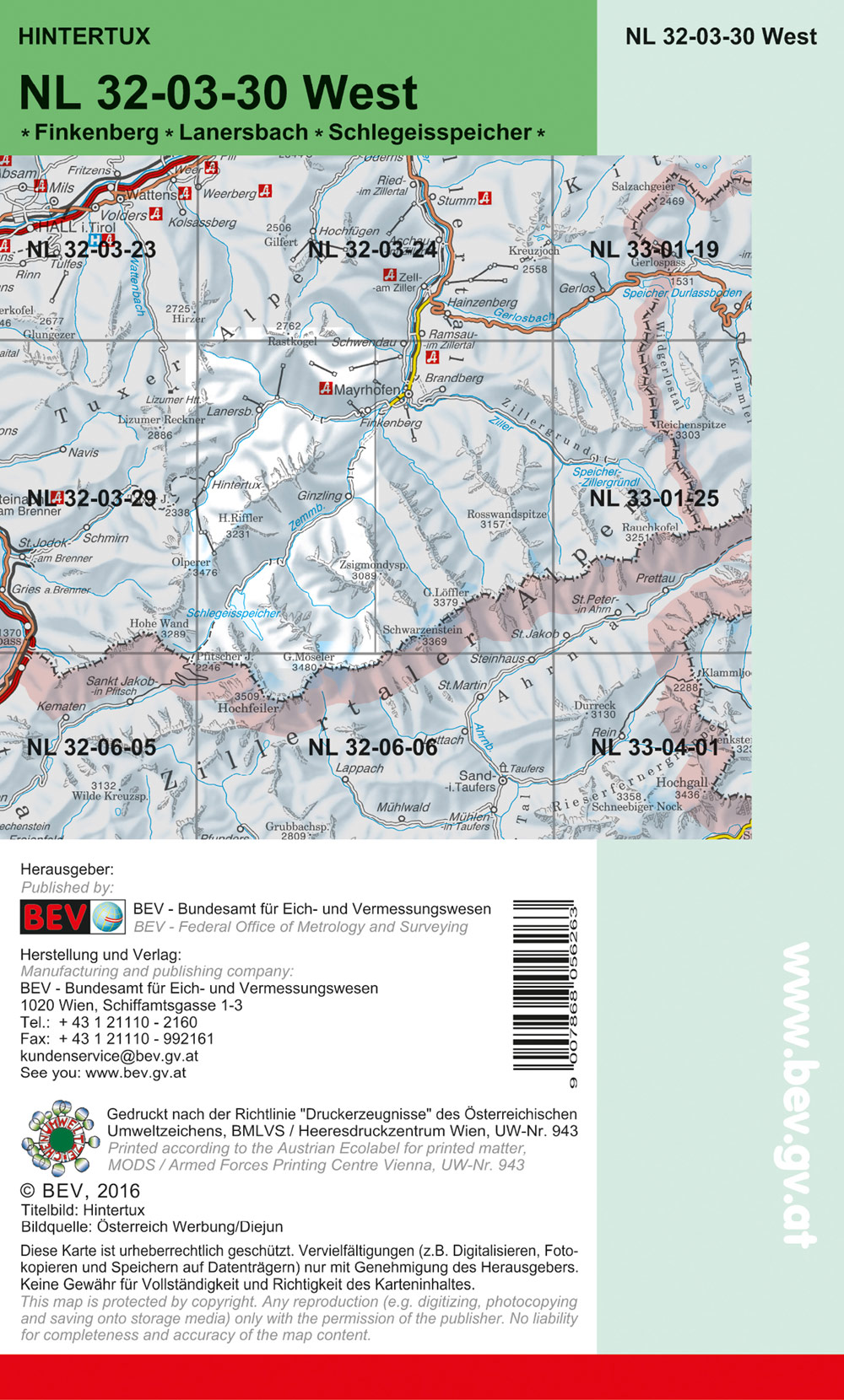 BEV-Karte 2230-West, Hintertux 1:25 000V