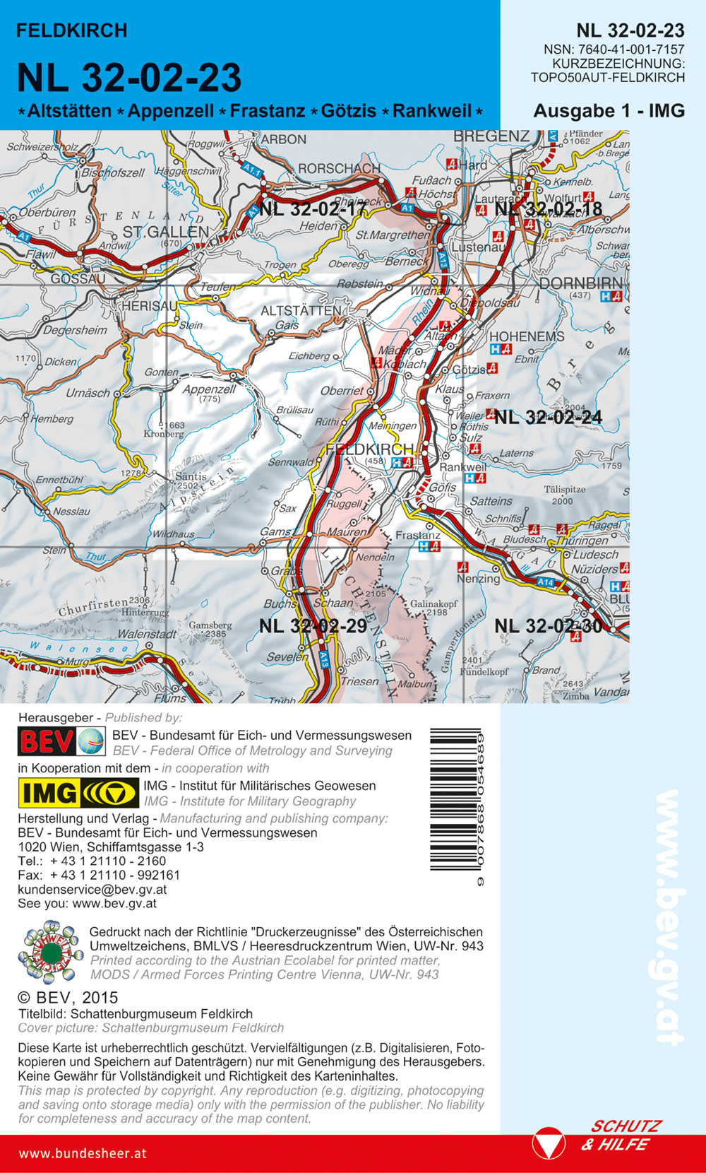 BEV-Karte 1223, Feldkirch 1:50 000