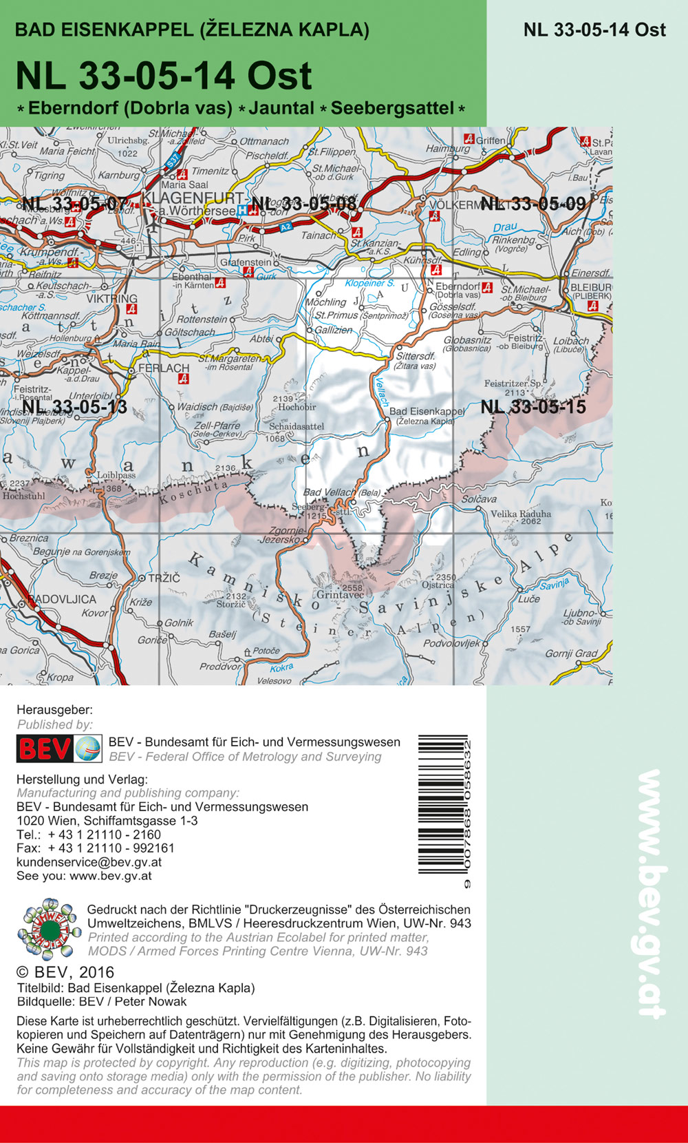 BEV-Karte 4114-Ost, Bad Eisenkappel / Železna Kapla 1:25 000V