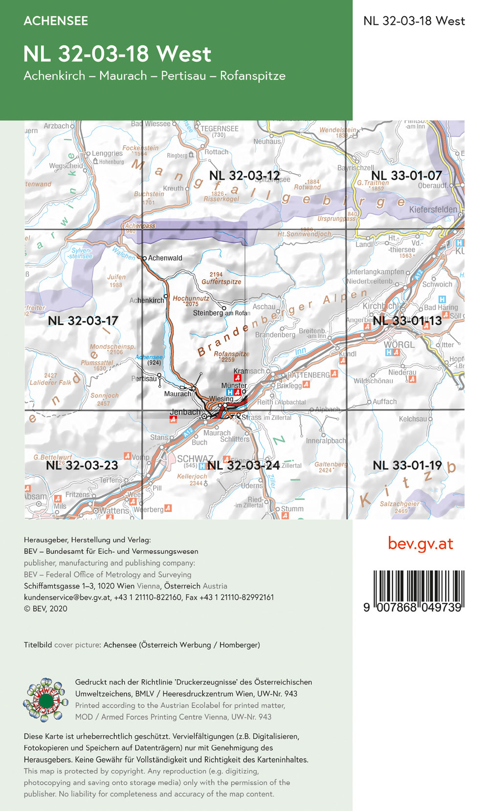 BEV-Karte 2218-West, Achensee 1:25 000V