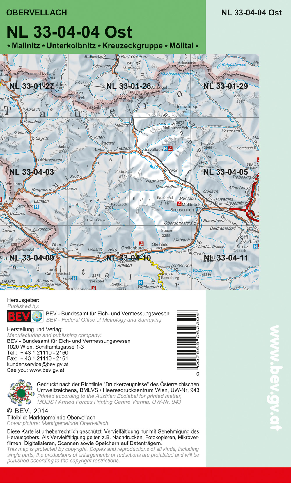 BEV-Karte 3104-Ost, Obervellach 1:25 000V